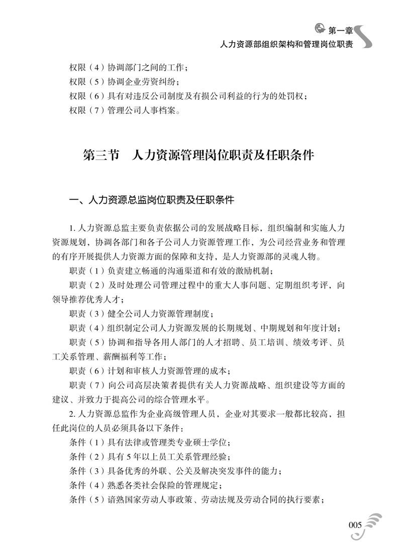 权限(2)具有对员工薪资调整及相应职位调整、人员任免的建议权;