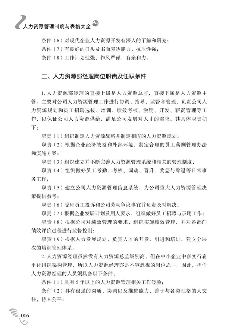 职责(3)负责企业人力资源管理制度的拟订、调整、执行和监督;
