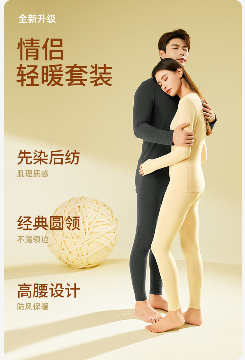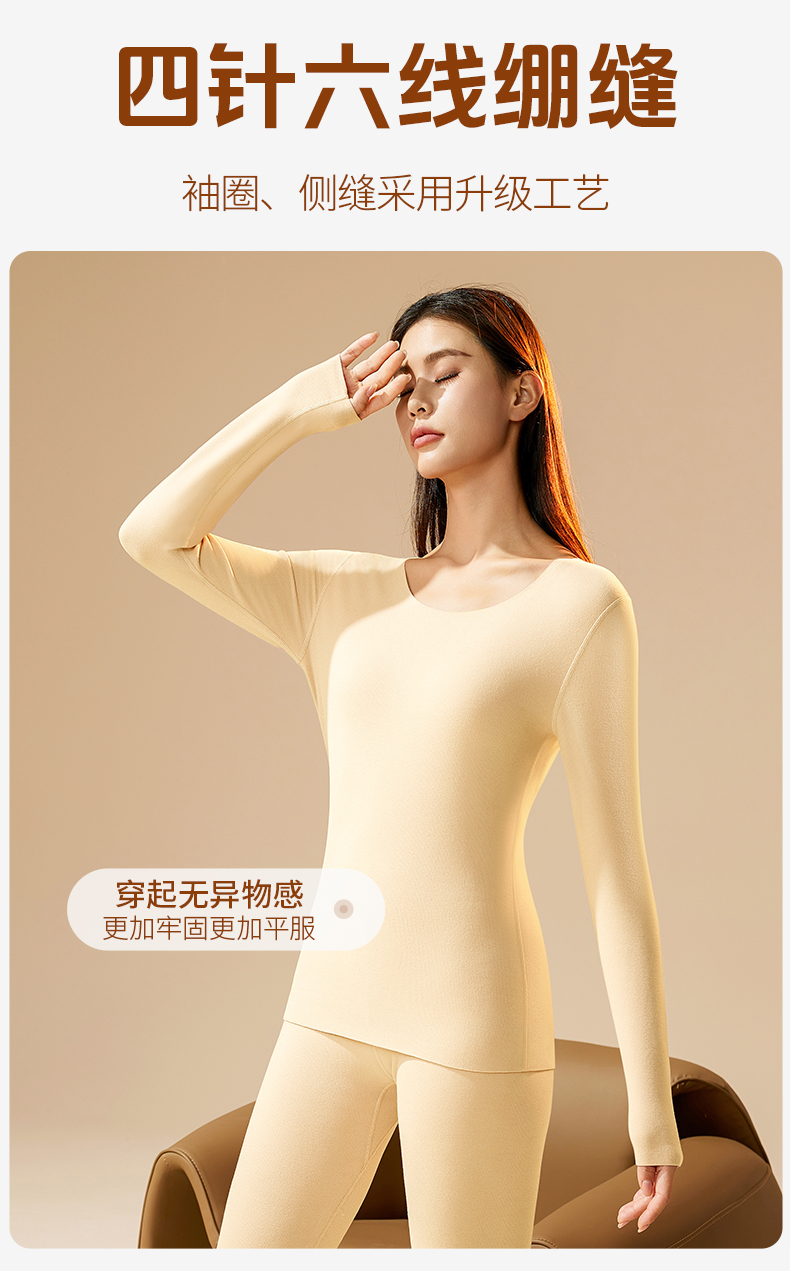 爱帝7A抗菌依翡丝色纺腈纶圆领保暖内衣套装男/女款可选
