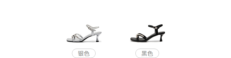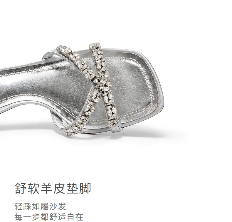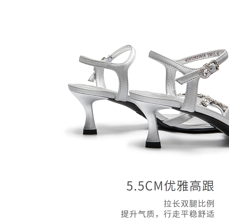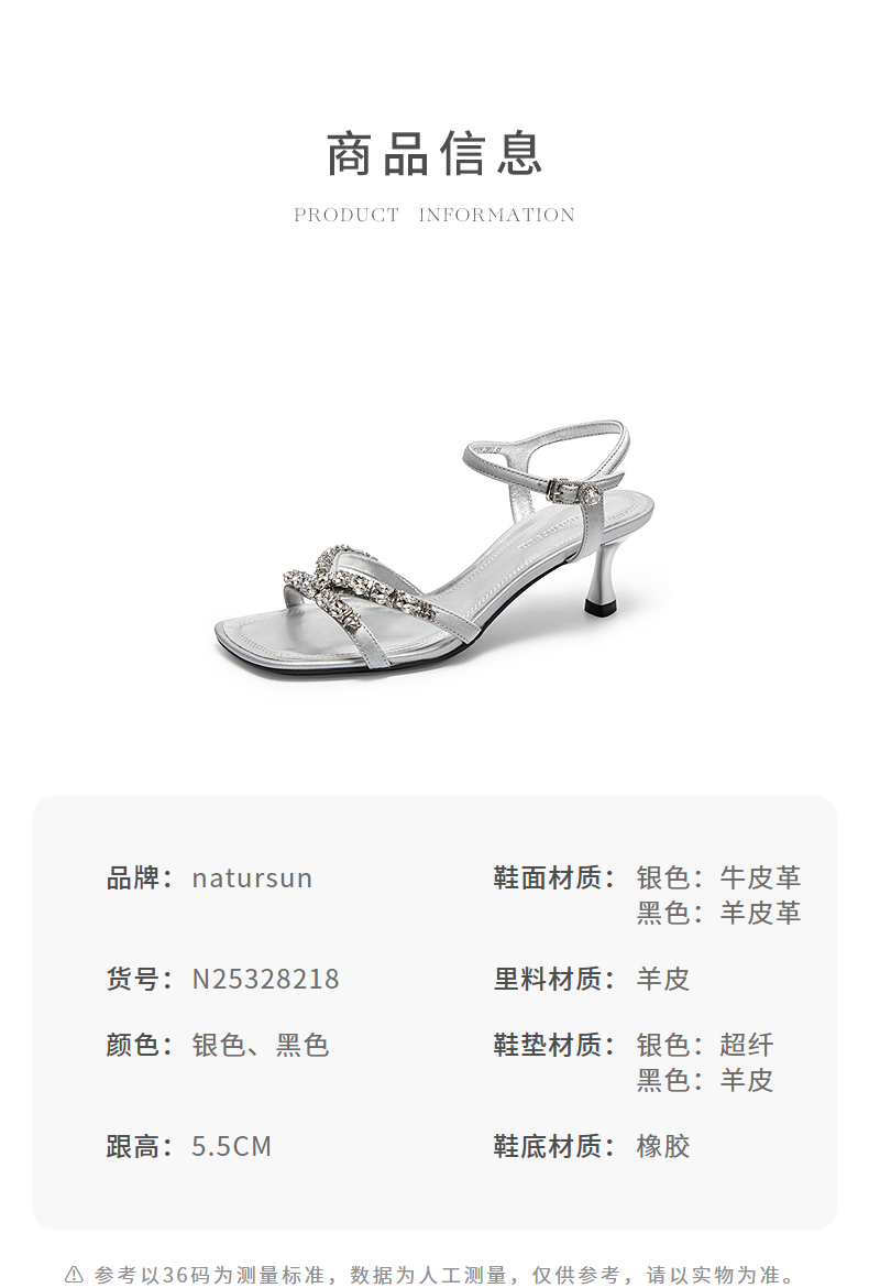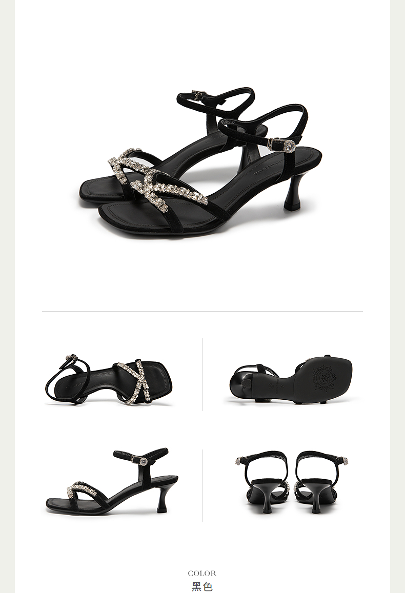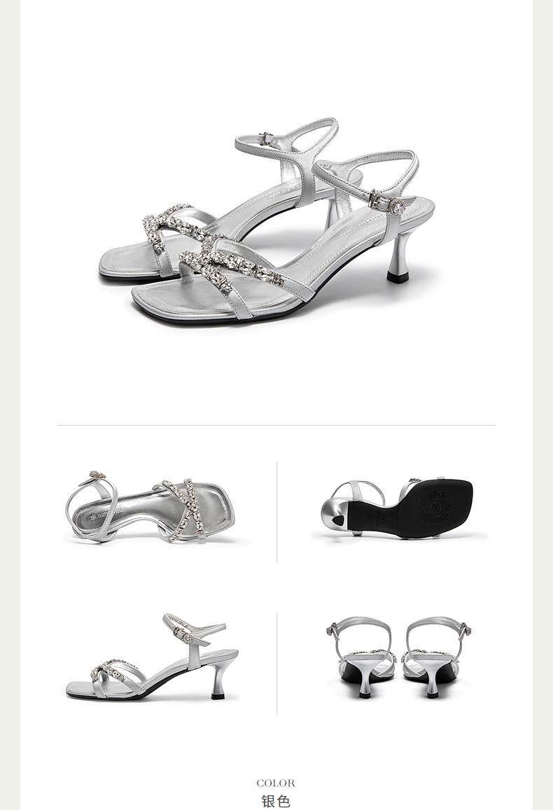 natursun时装凉鞋女宴会优雅闪钻一字带舒适细高跟鞋N25328218