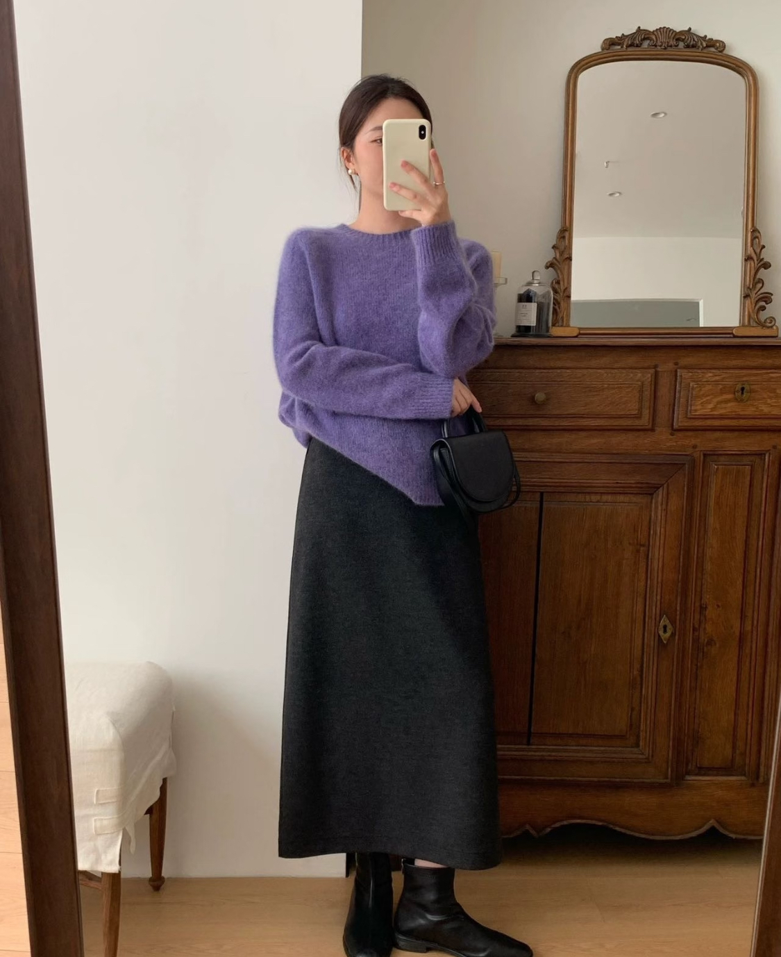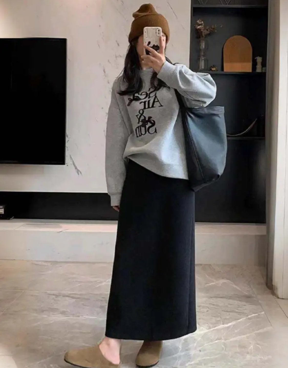 老米优品🎈秋冬神裙!含绵羊毛~《醋酸羊毛加绒H半身裙》显瘦又保暖~ 软糯手感+加绒内里,秋冬穿不冻腿!Q251215A
