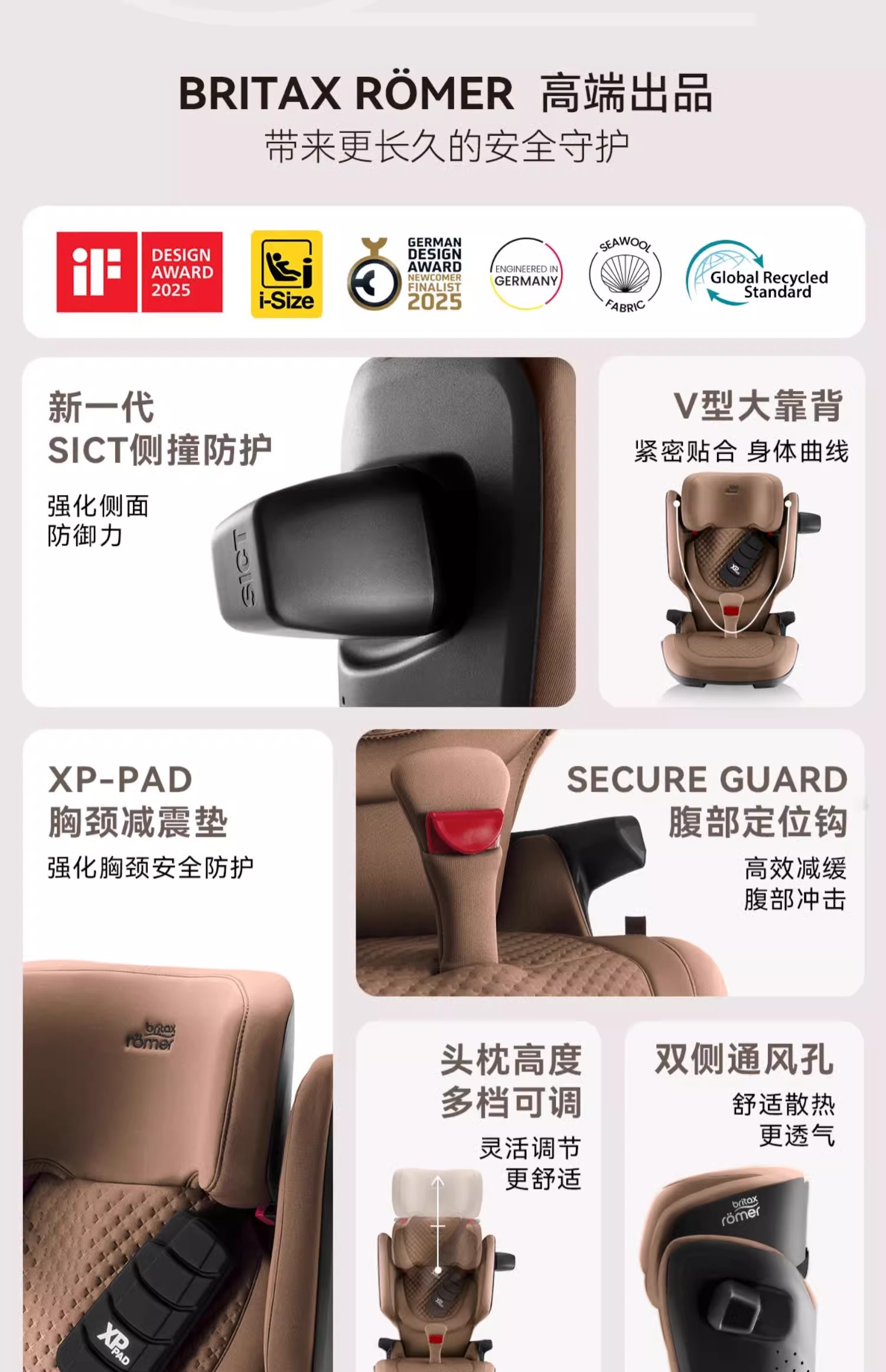 britax宝得适进口大童安全座椅≈3.5一12岁凯迪骑士PROLUX车载