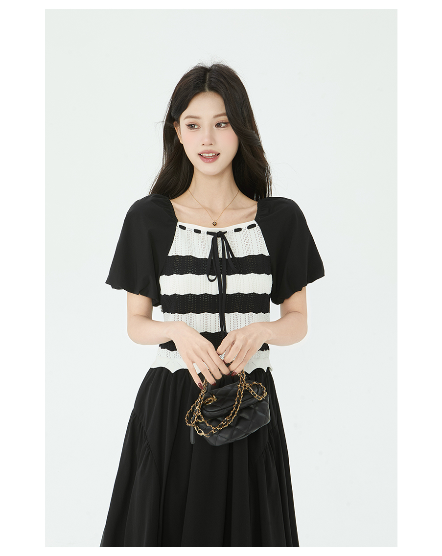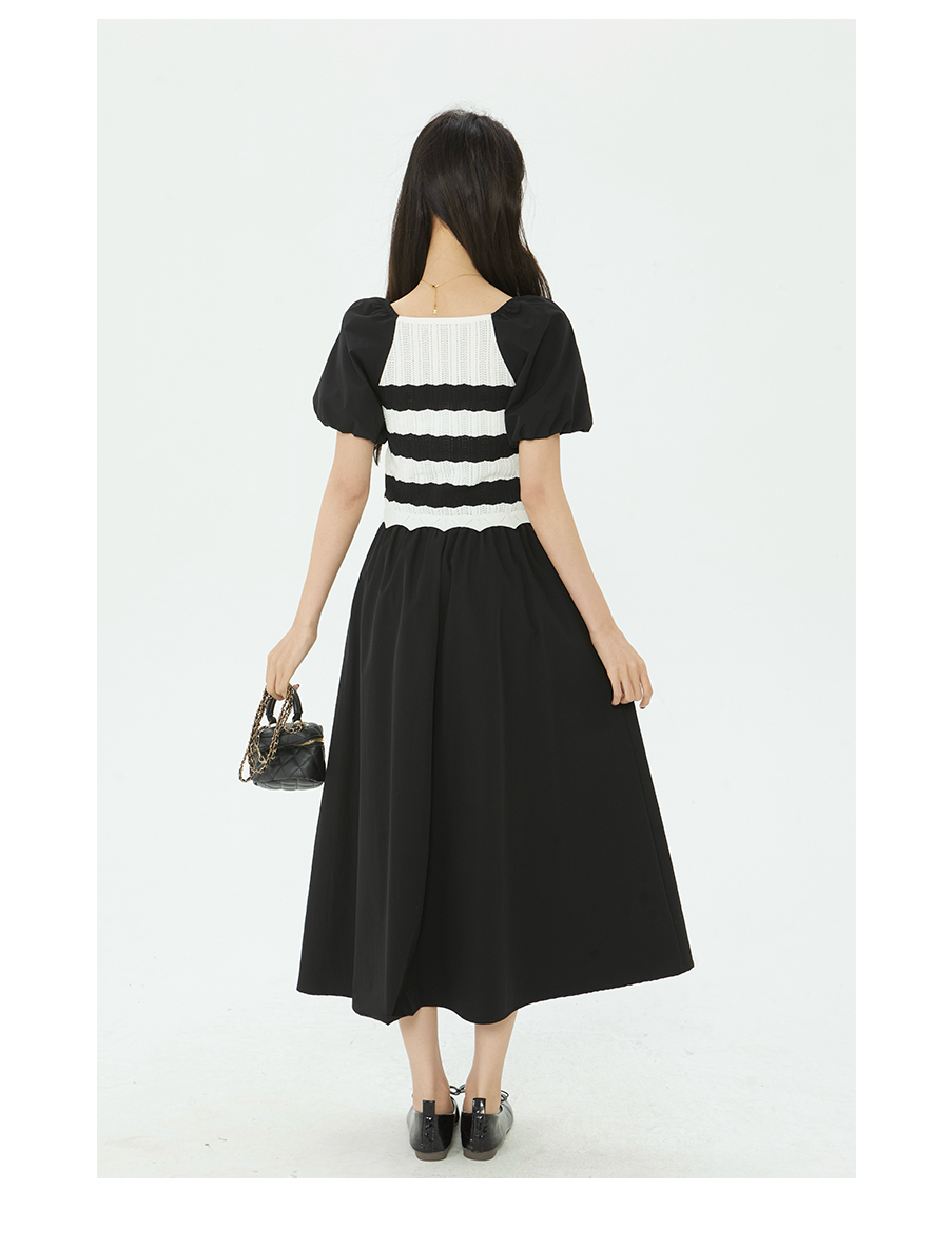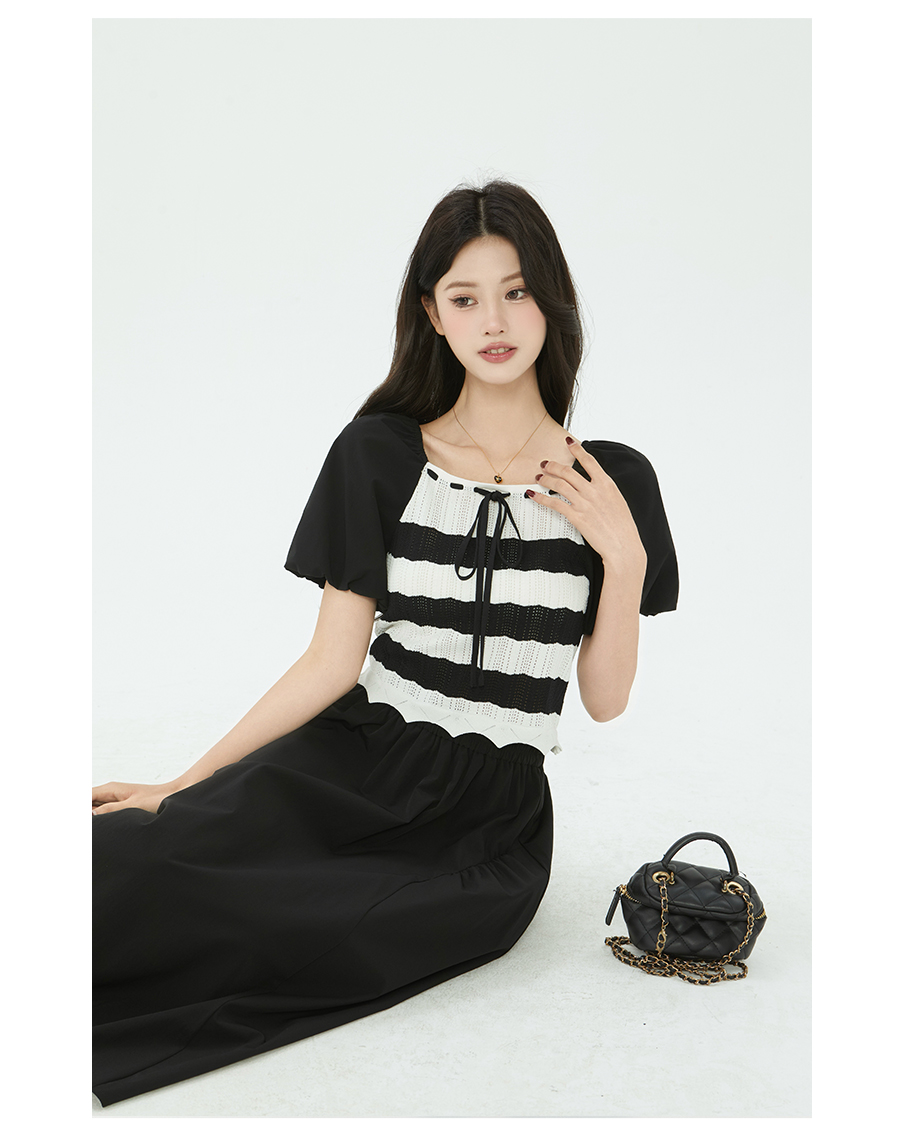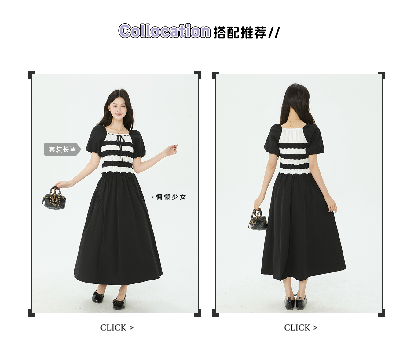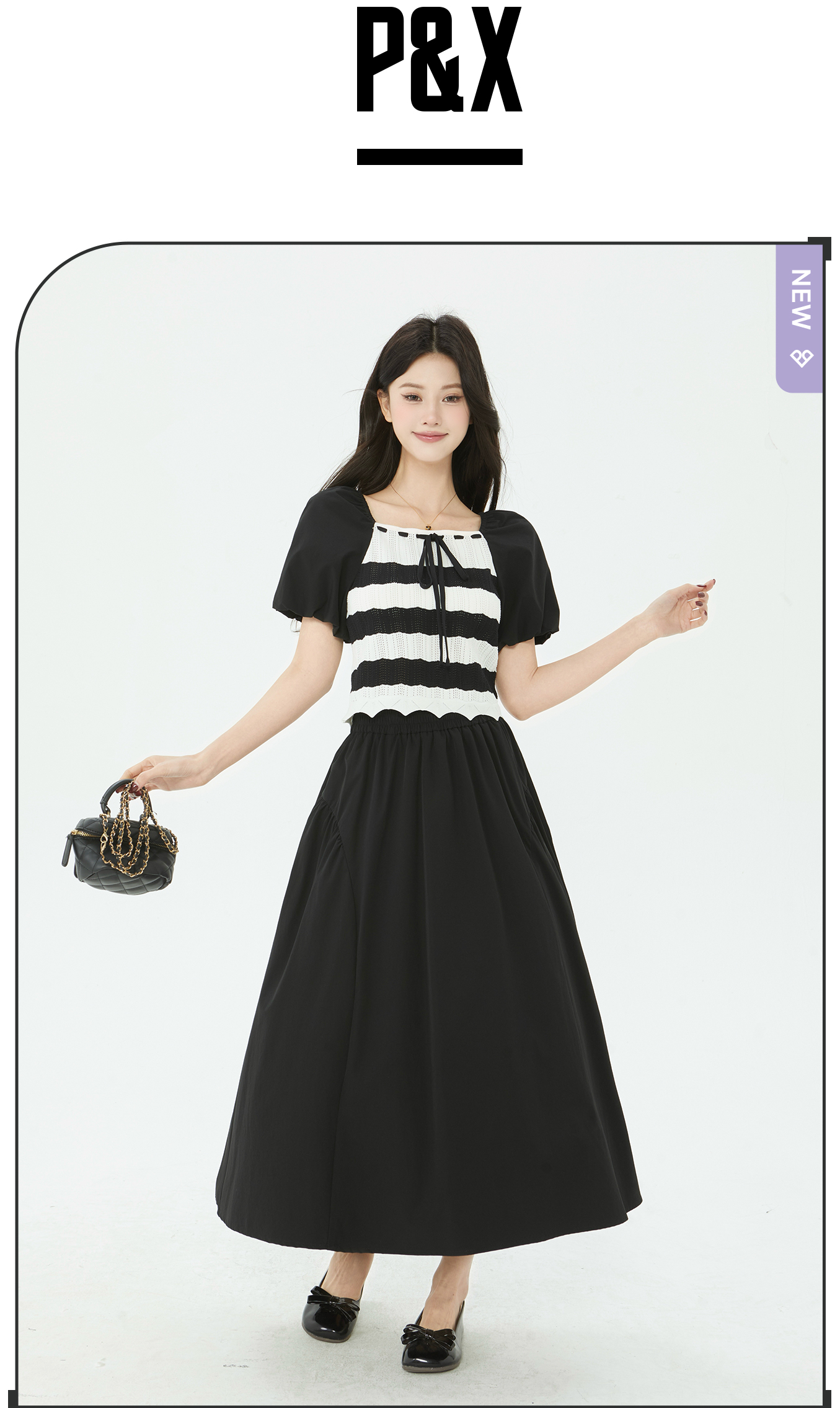 P&X设计师女装 黑白条纹撞色分式套装连衣长裙 825214081 黑色