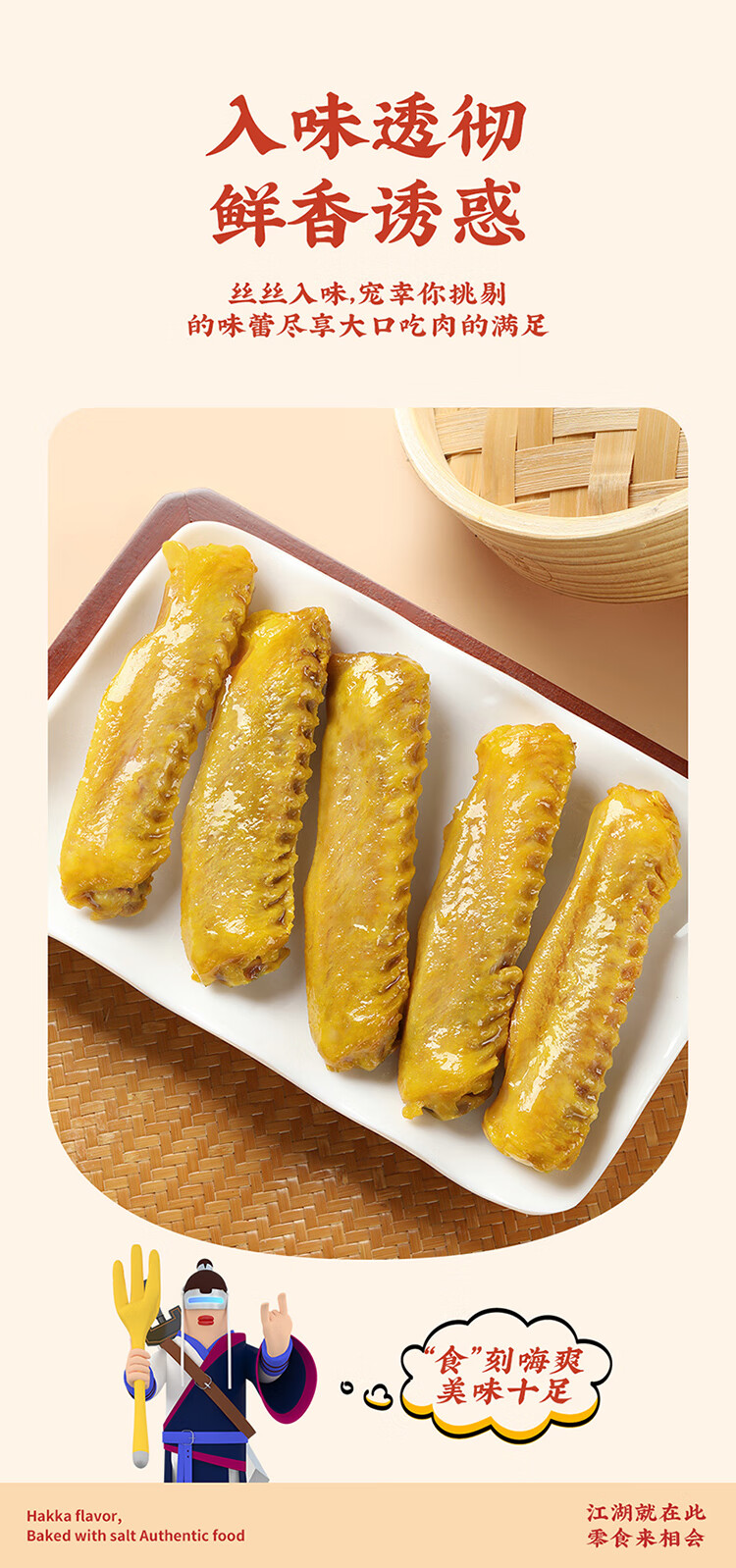真莊 真庄 盐焗鸭中翅广东客家特产鸭肉追剧零食即食鸭翅膀休闲零食 【香辣/盐焗鸭中翅200g*1】(独立装)