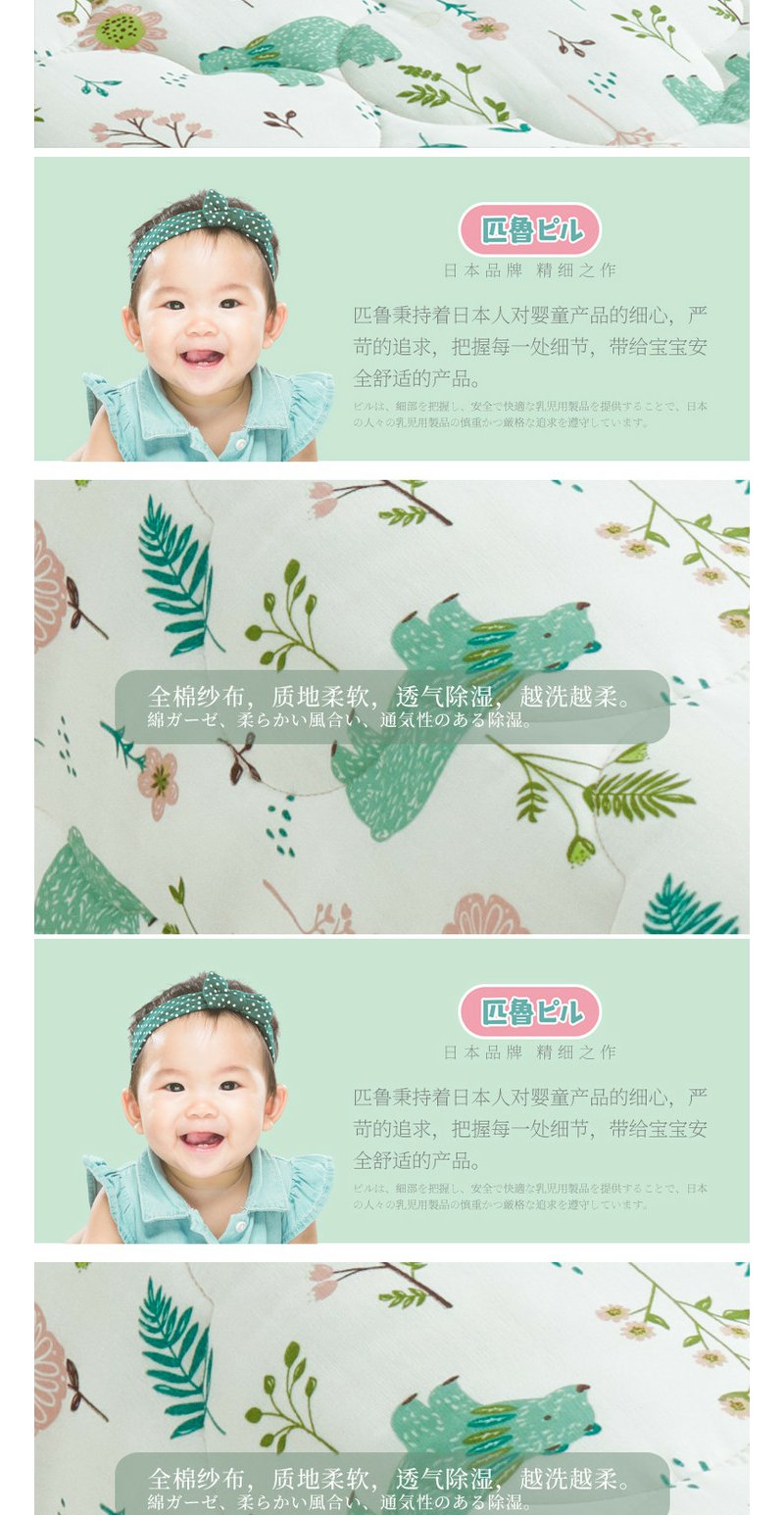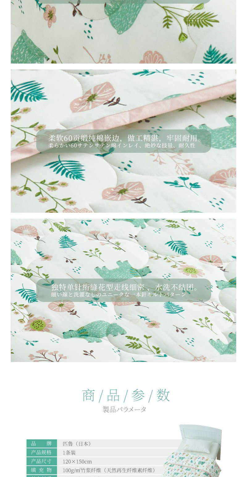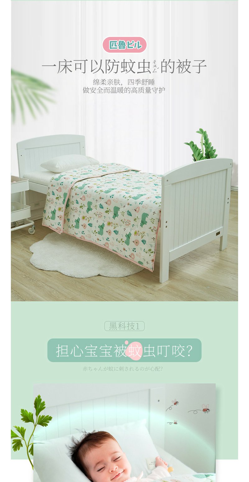 日本匹鲁(ピル)婴儿被子竹浆纤维艾草防蚊纱布夏凉空调被幼儿园四季被芯