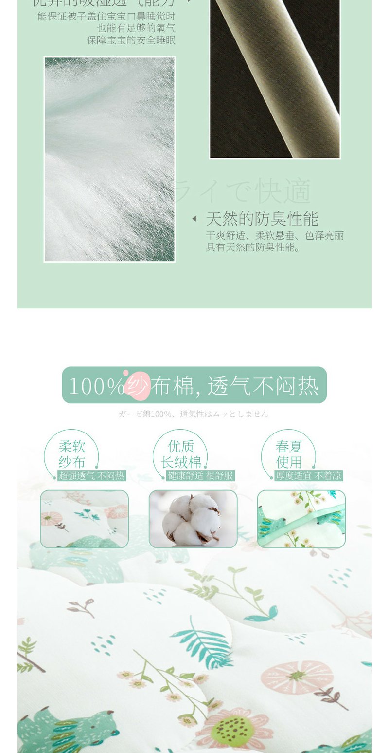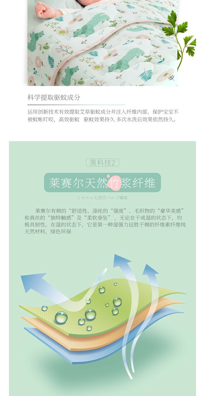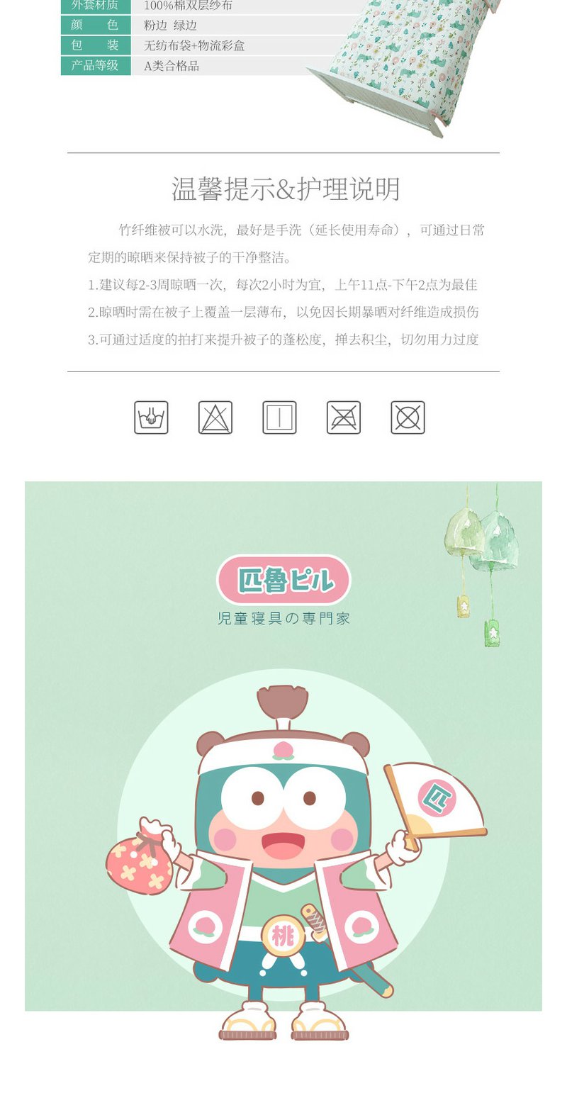 日本匹鲁(ピル)婴儿被子竹浆纤维艾草防蚊纱布夏凉空调被幼儿园四季被芯