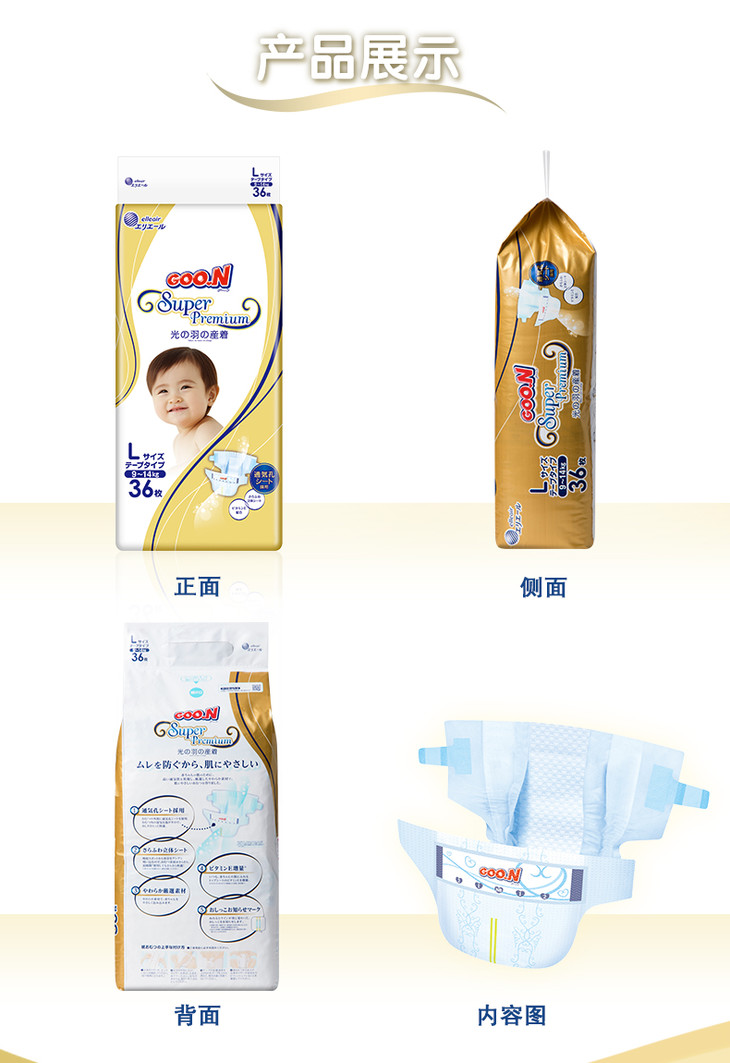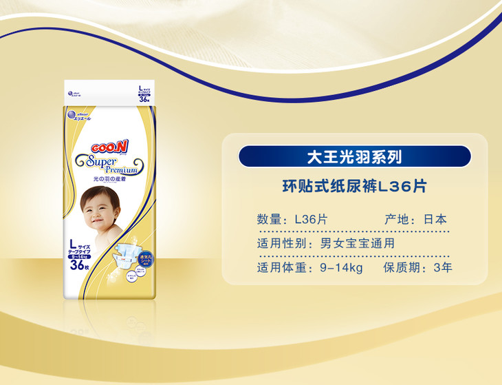 GOO.N(大王)婴儿用纸尿裤光羽系列L36片(4包每箱)