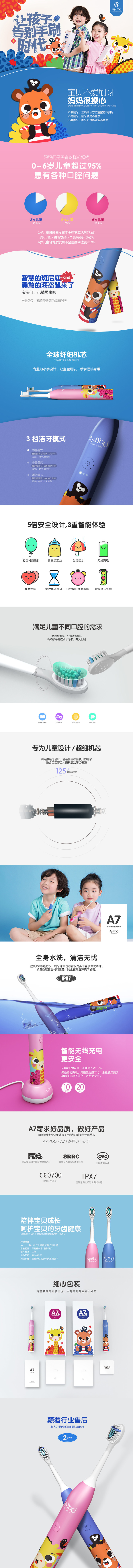 荷兰apiyoo艾优儿童电动牙刷充电式3-6-12岁小孩软毛防水自动牙刷【艾优】