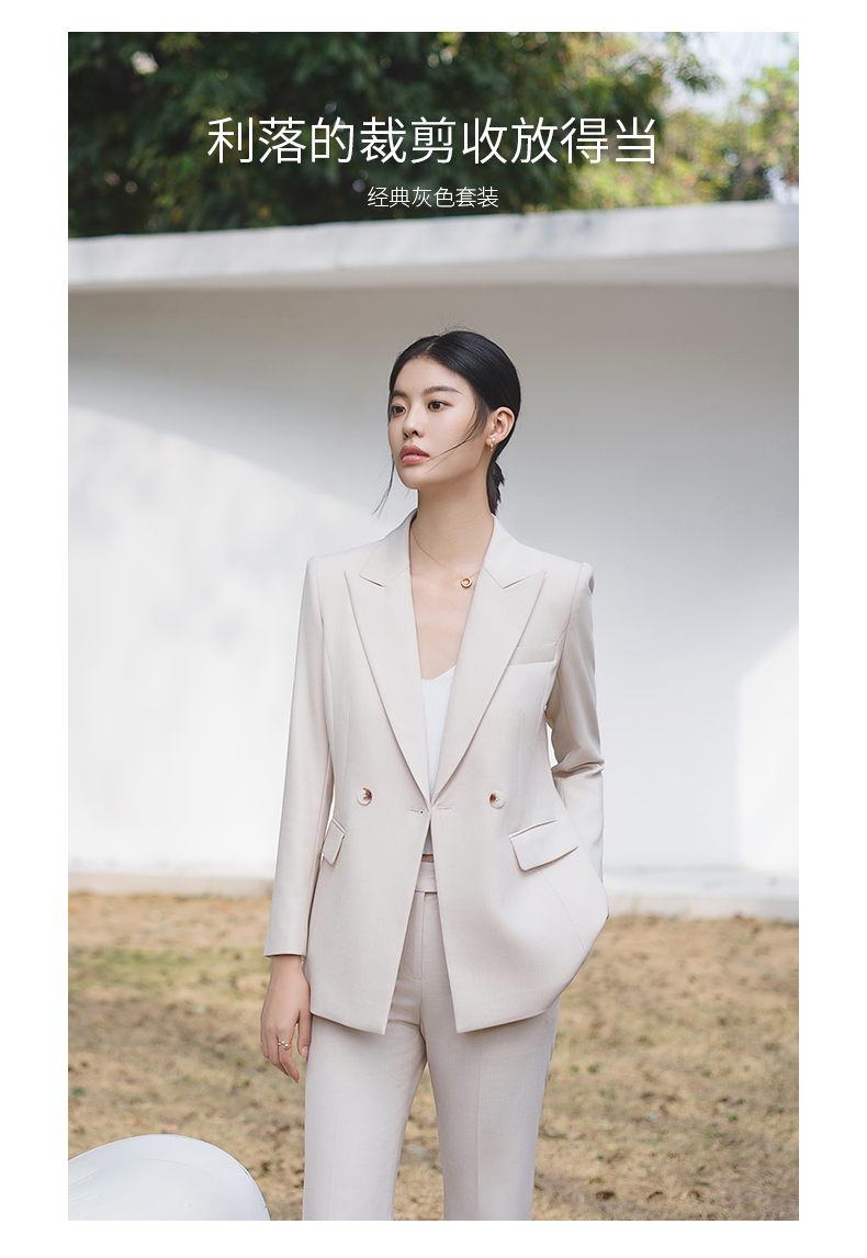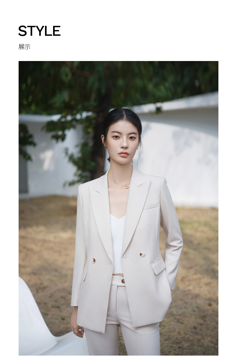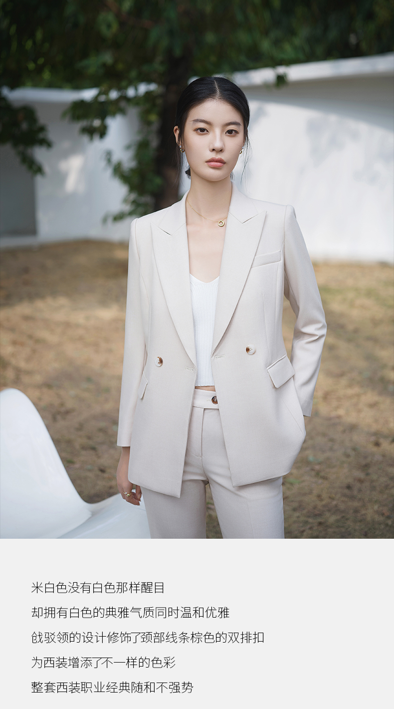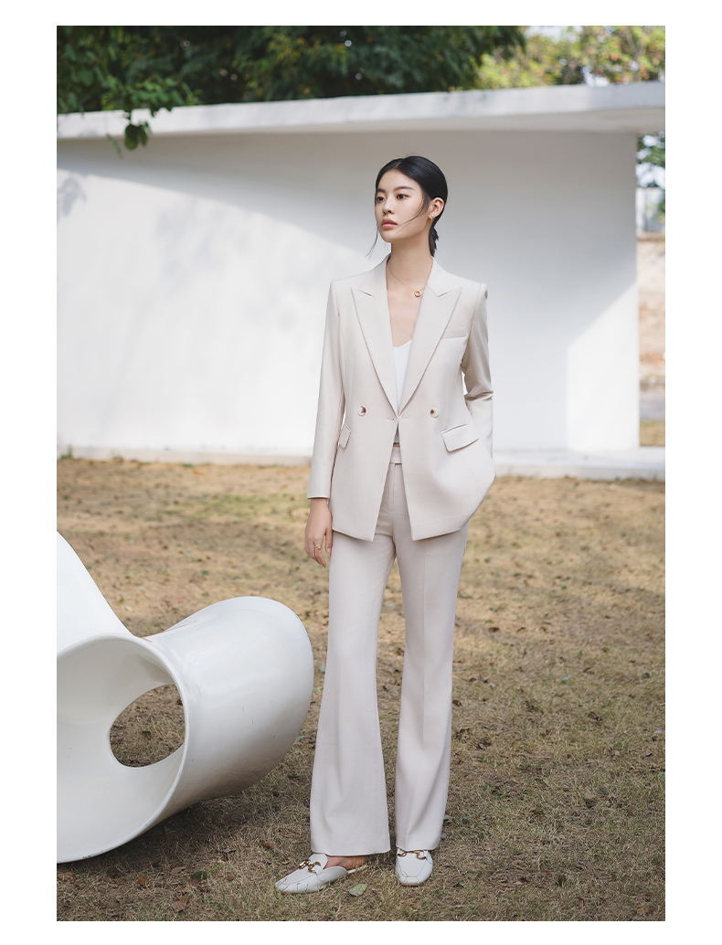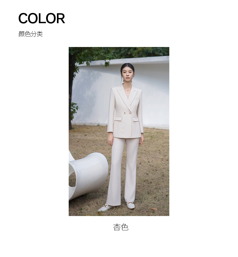 IWY/新款杏色宽松版西装套装微喇裤气质通勤正装气场强大西服C14221+P34221