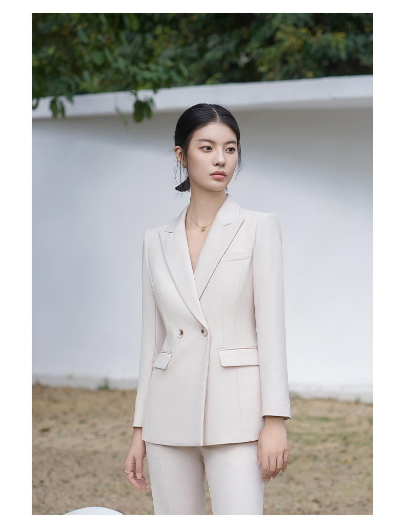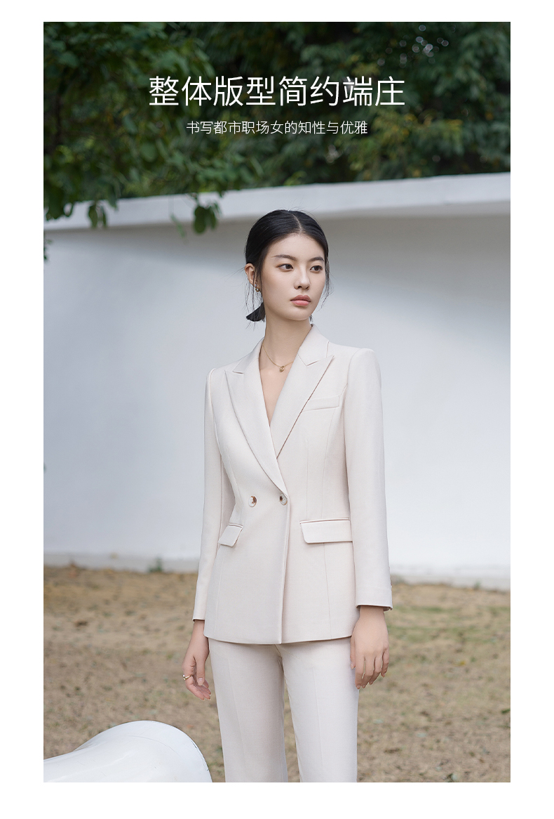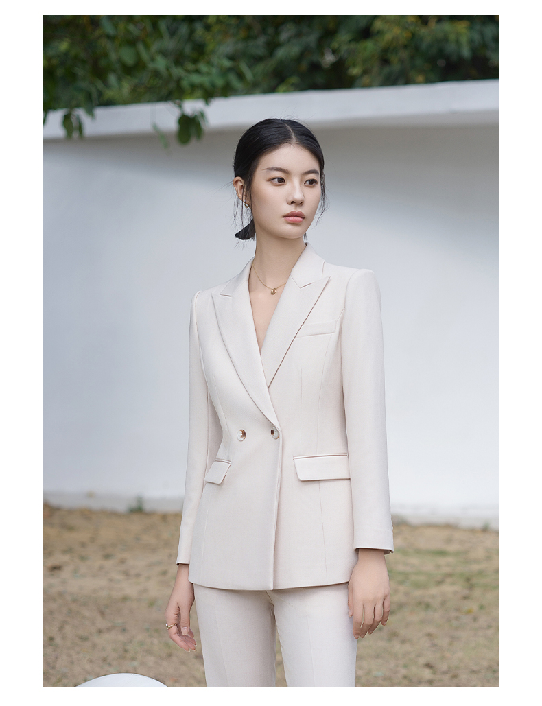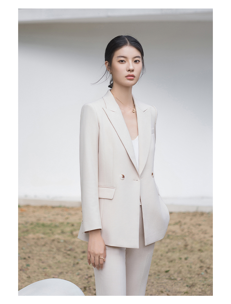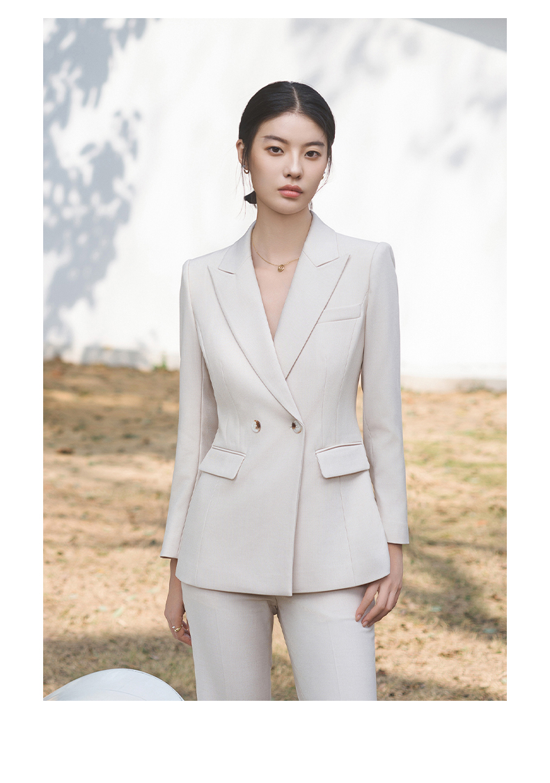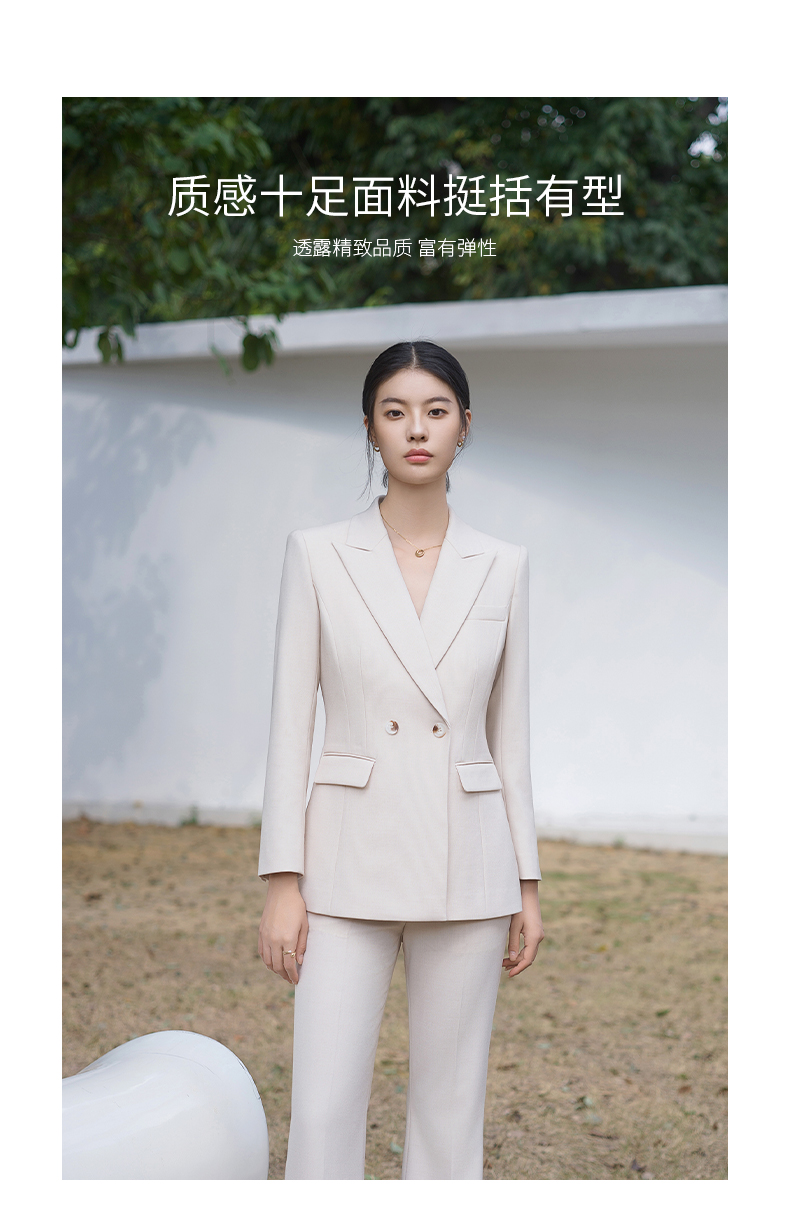 IWY/新款杏色宽松版西装套装微喇裤气质通勤正装气场强大西服C14221+P34221