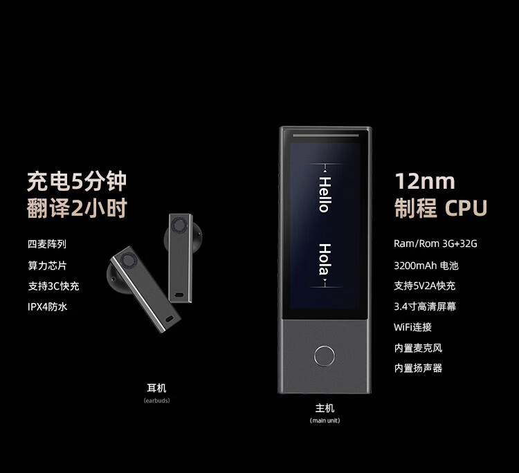 时空壶 X1同声翻译耳机 AI同声传译器