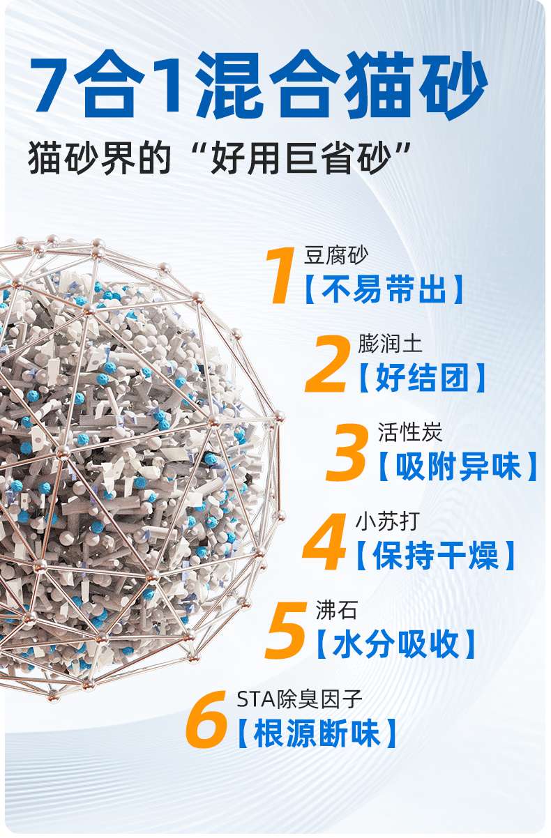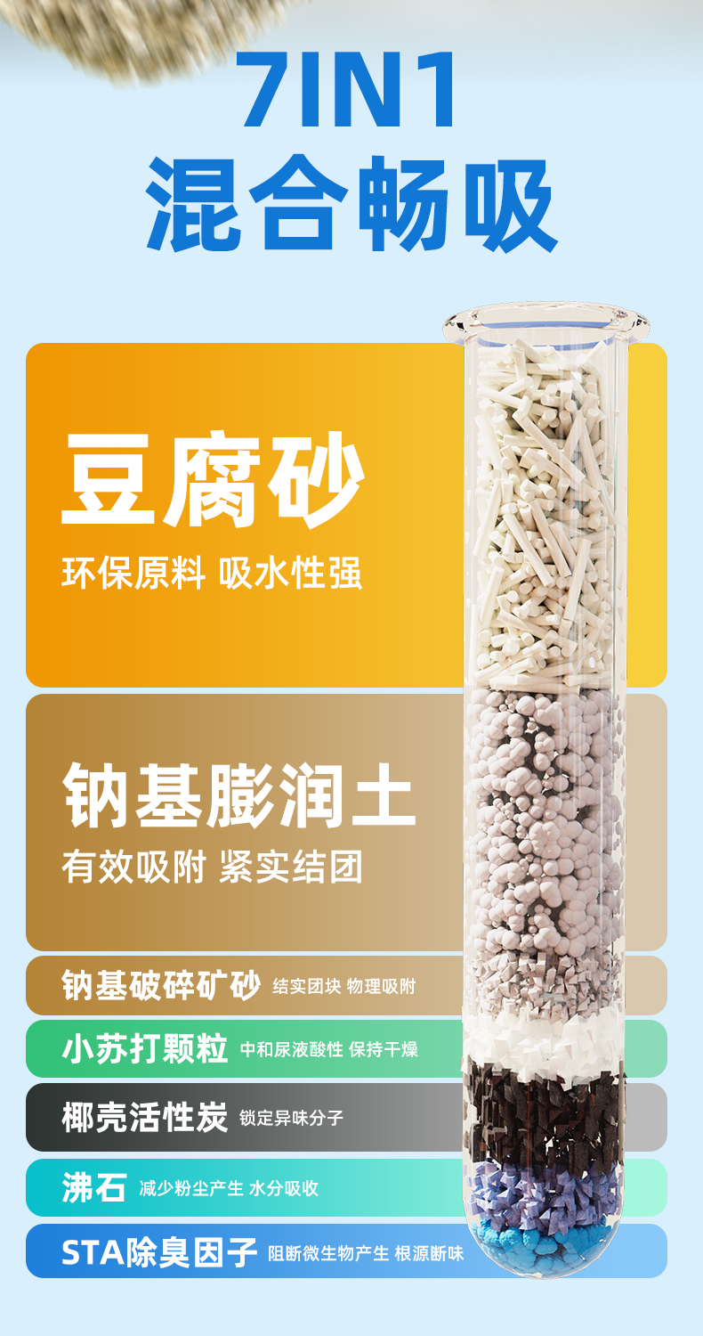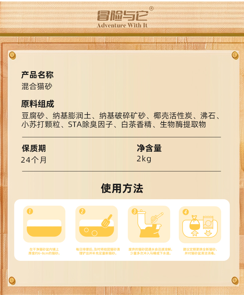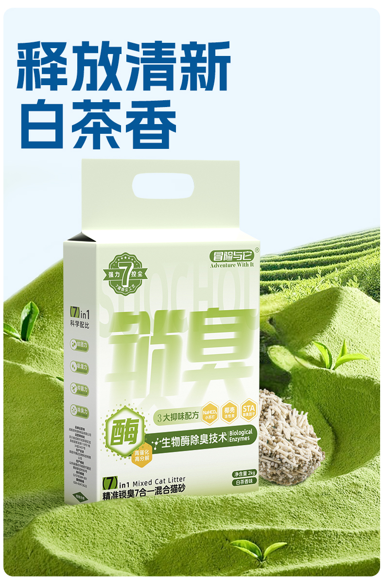 【猫砂】冒险与它 7合1混合猫砂2kg 白茶香型 多重抑味配方 不粘底 猫砂批发