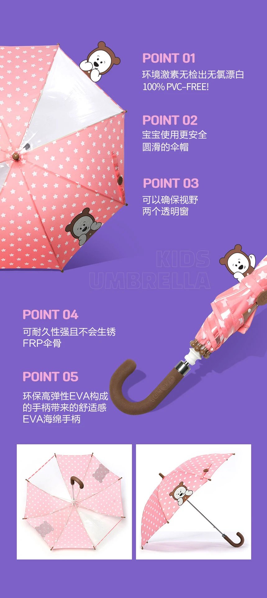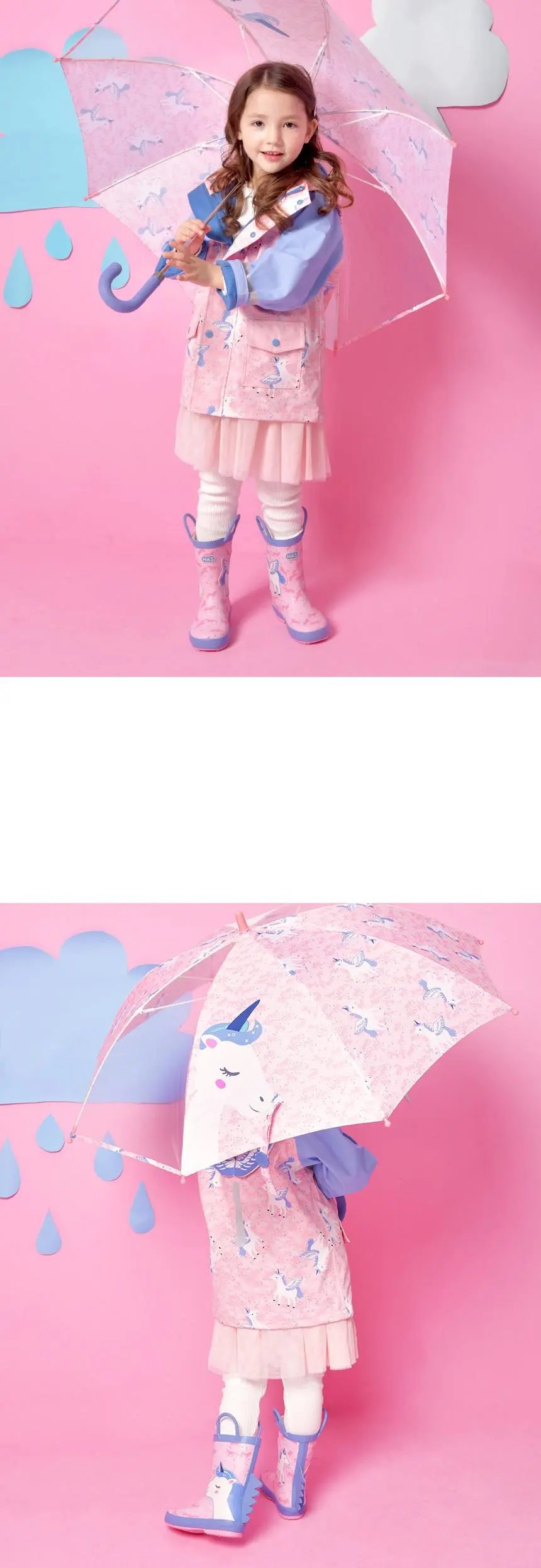 (S适合3-9岁)清仓【HAS儿童雨伞】 韩国可爱卡通部分透明手动雨伞直杆伞可视儿童伞长柄伞