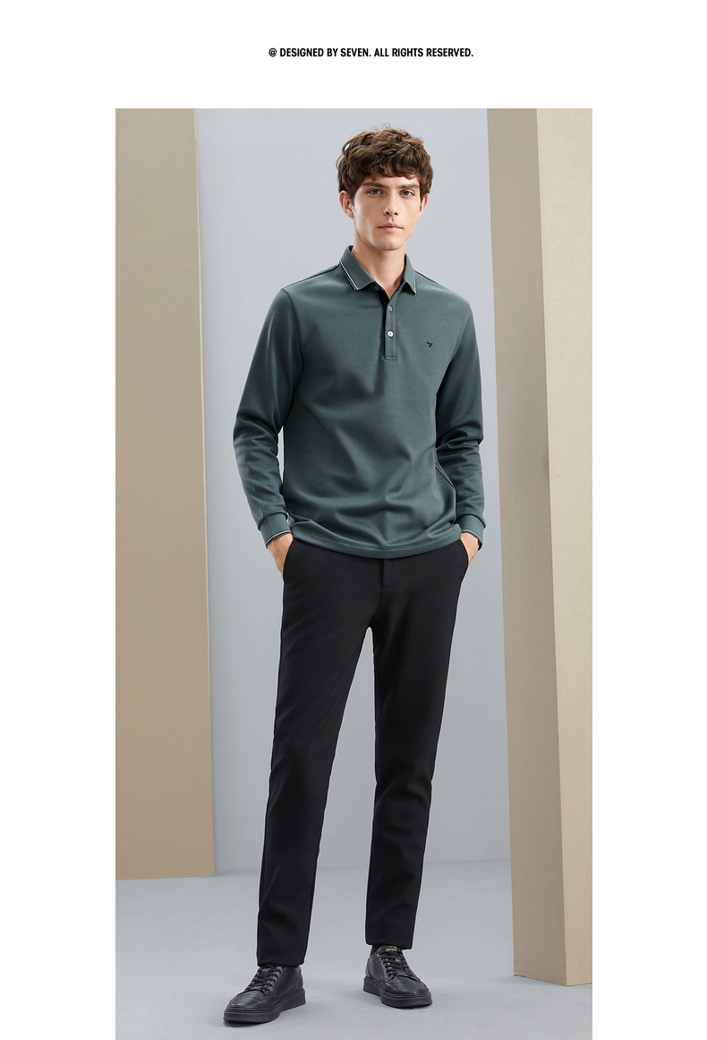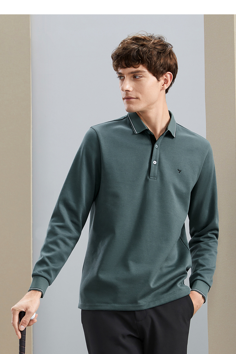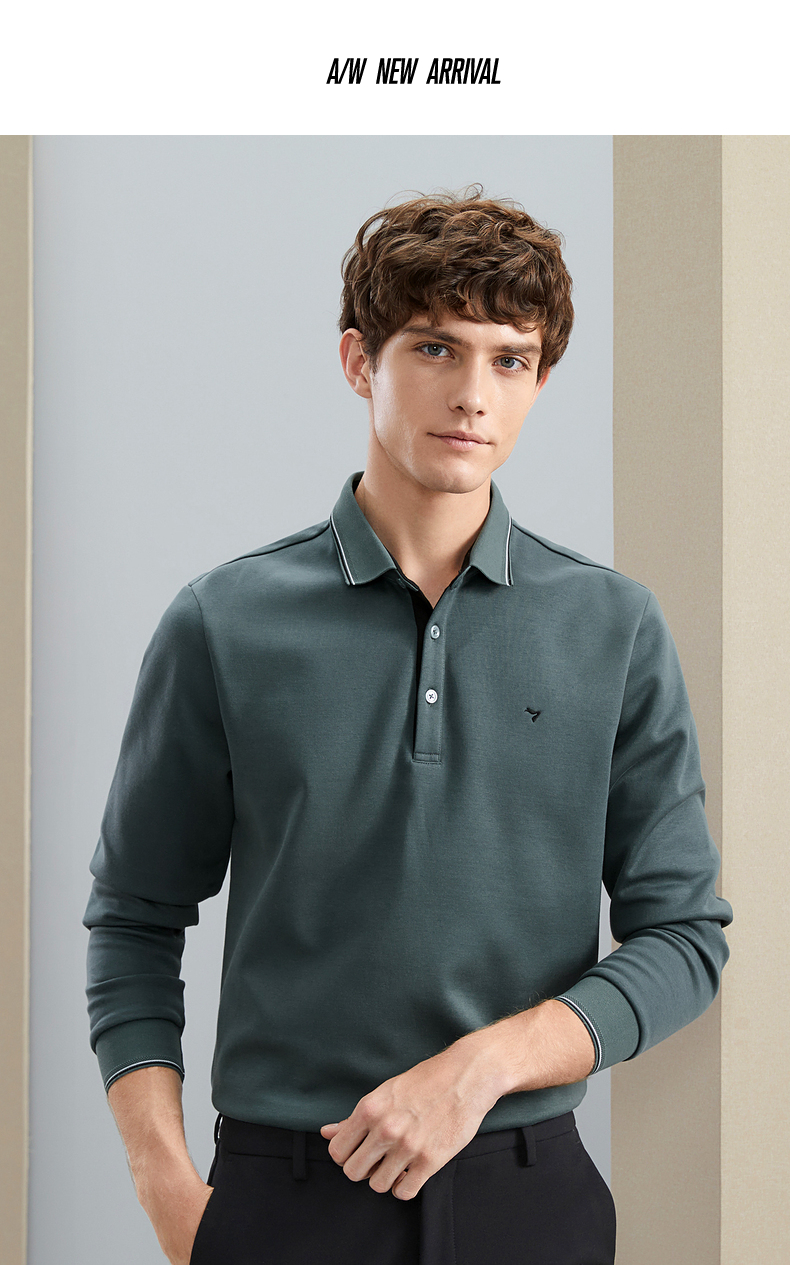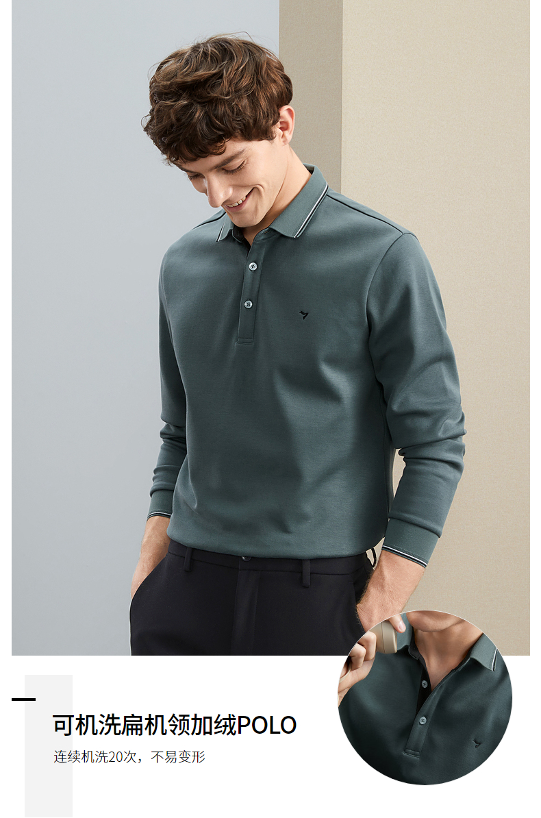 【加绒保暖】柒牌polo衫男长袖秋冬厚款商务百搭撞色翻领T恤 125T70190