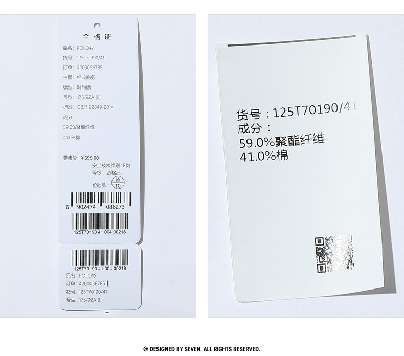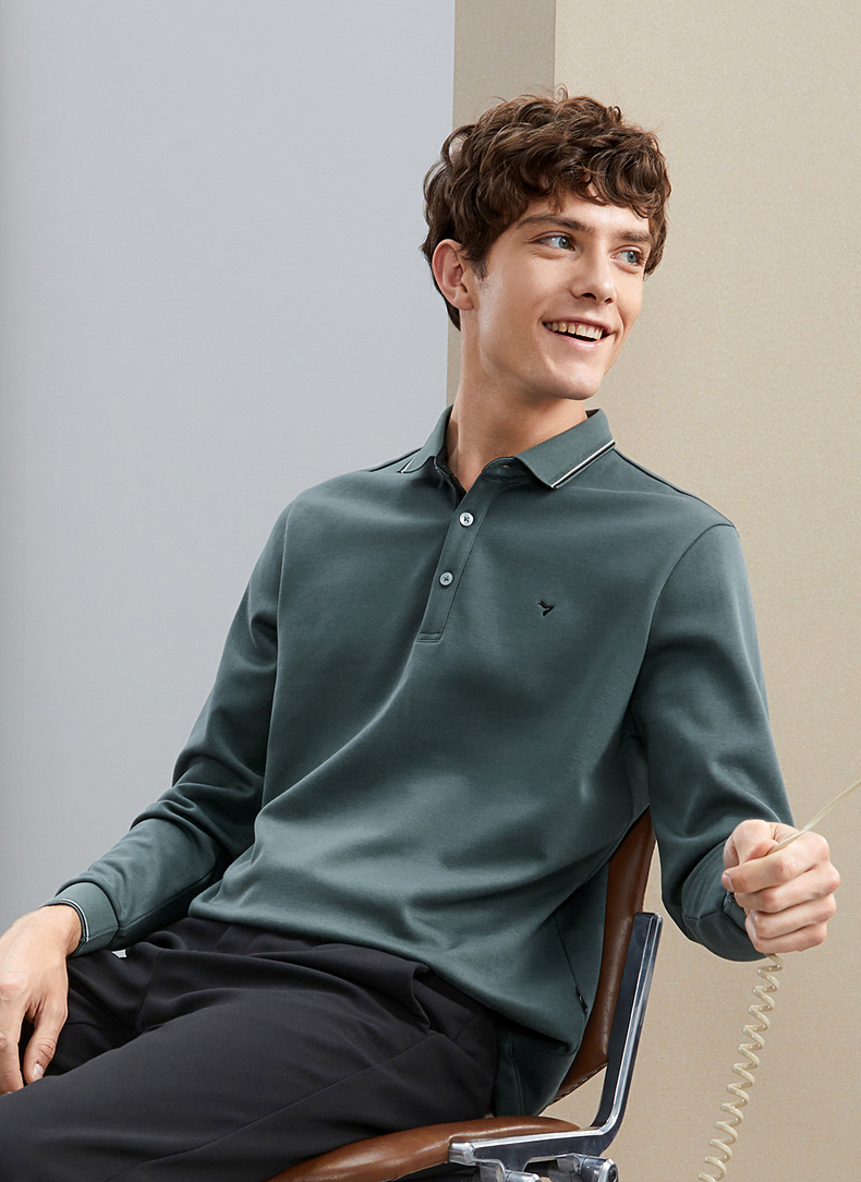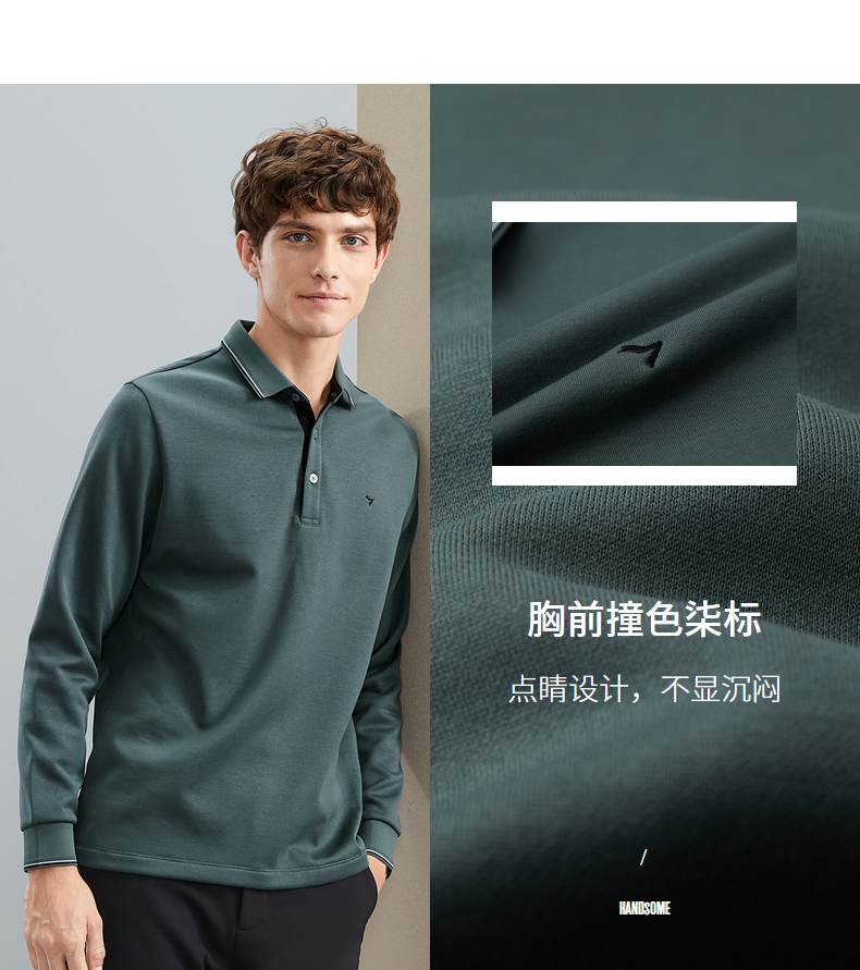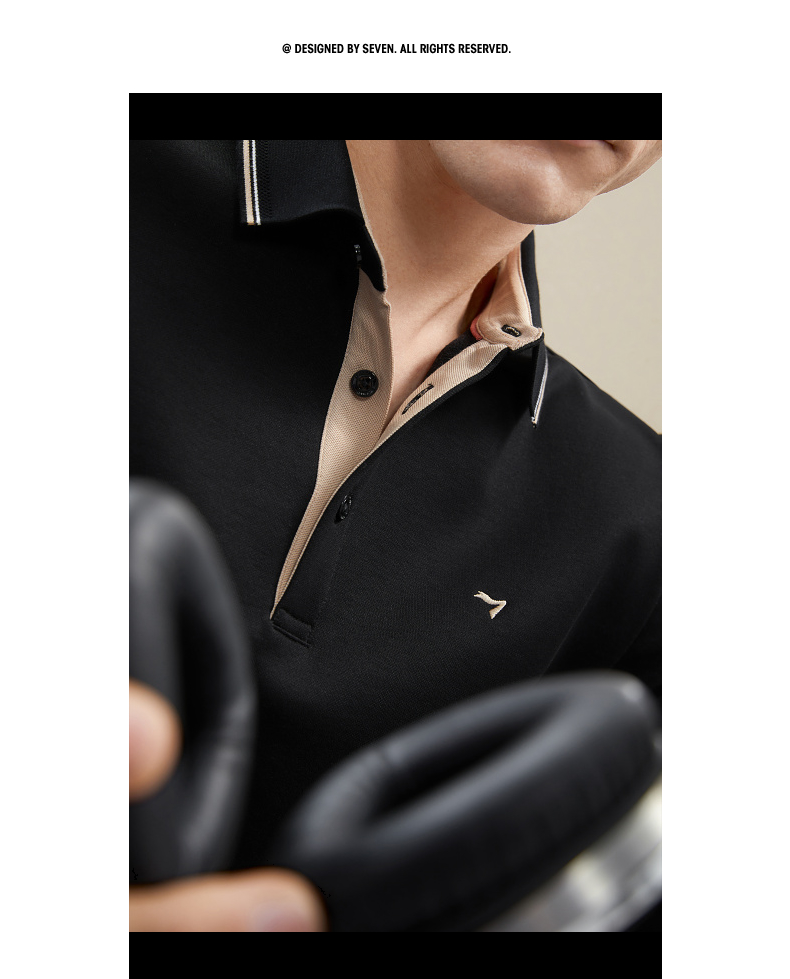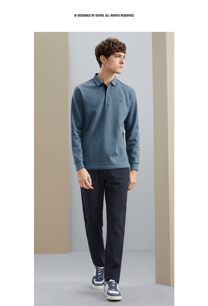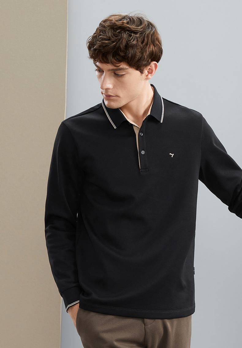 【加绒保暖】柒牌polo衫男长袖秋冬厚款商务百搭撞色翻领T恤 125T70190