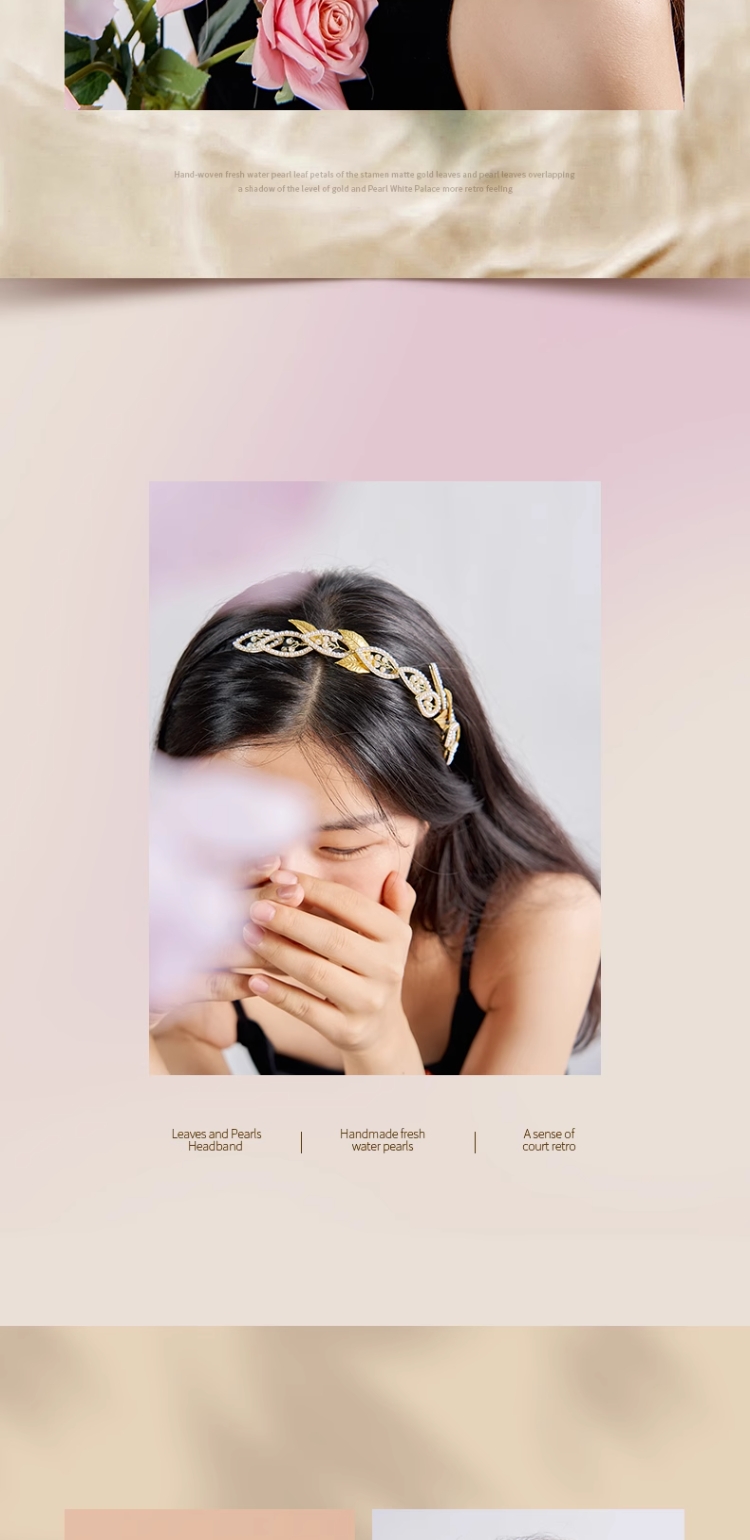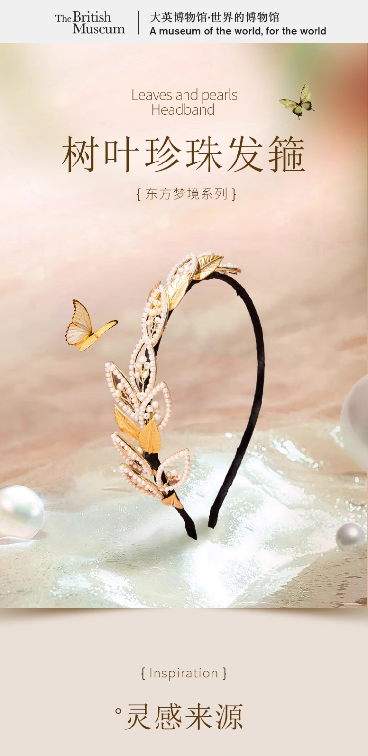 大英博物馆东方梦境系列 树叶镀金 淡水珍珠发箍节日礼物生日礼物
