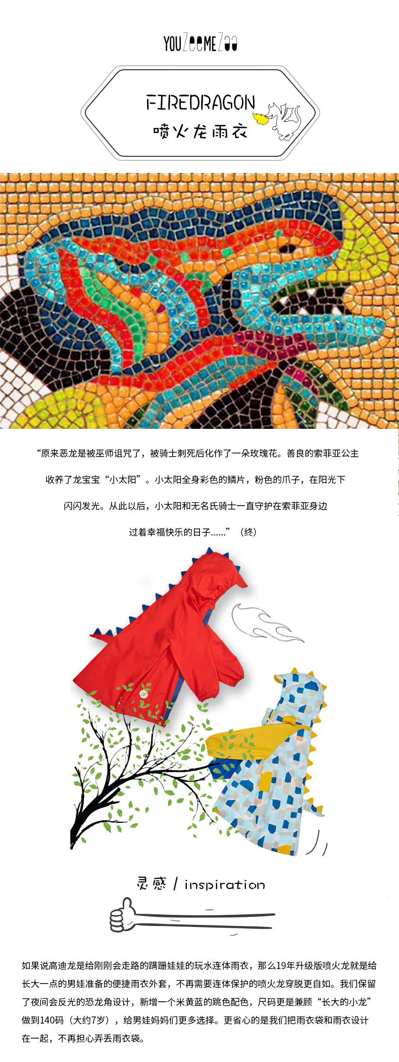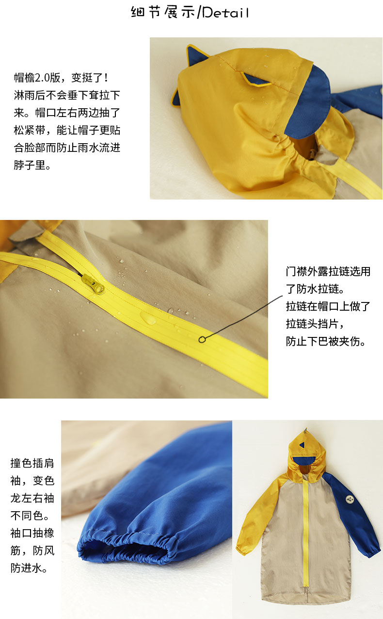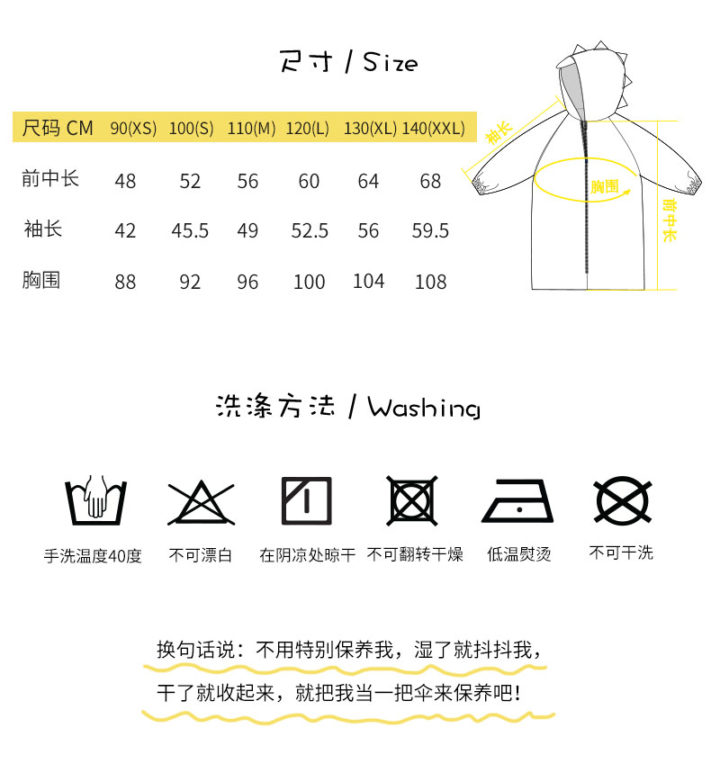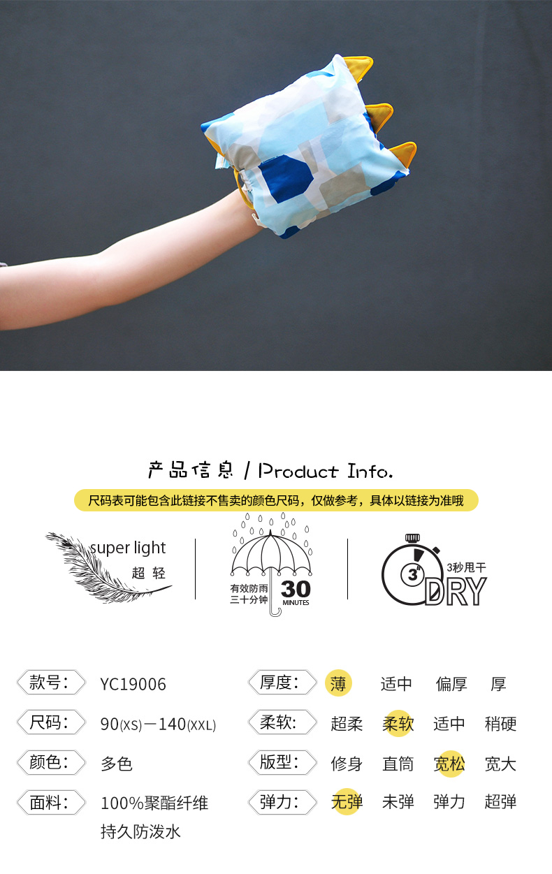 【代发】UzMz喷火龙儿童防泼水快干可折叠雨衣11