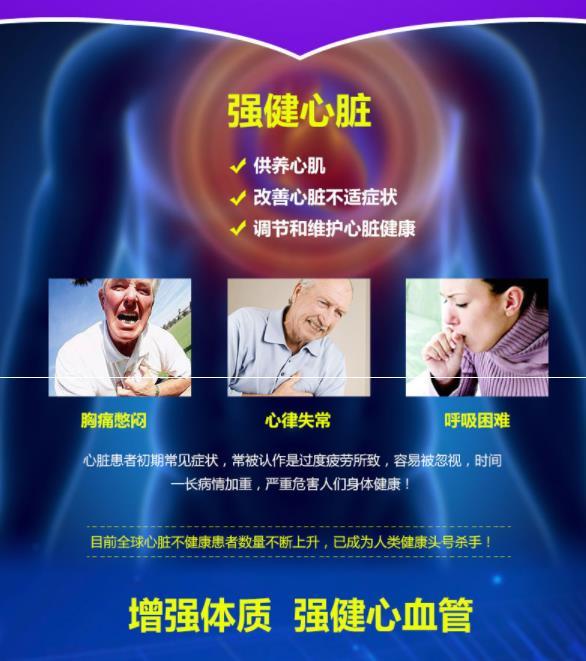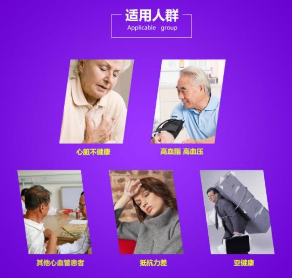 适宜人群:有家族遗传史,或想要预防心梗的人士,心肌缺血,心衰,心率失常的人士以及一切有心血管保健需要的人士。