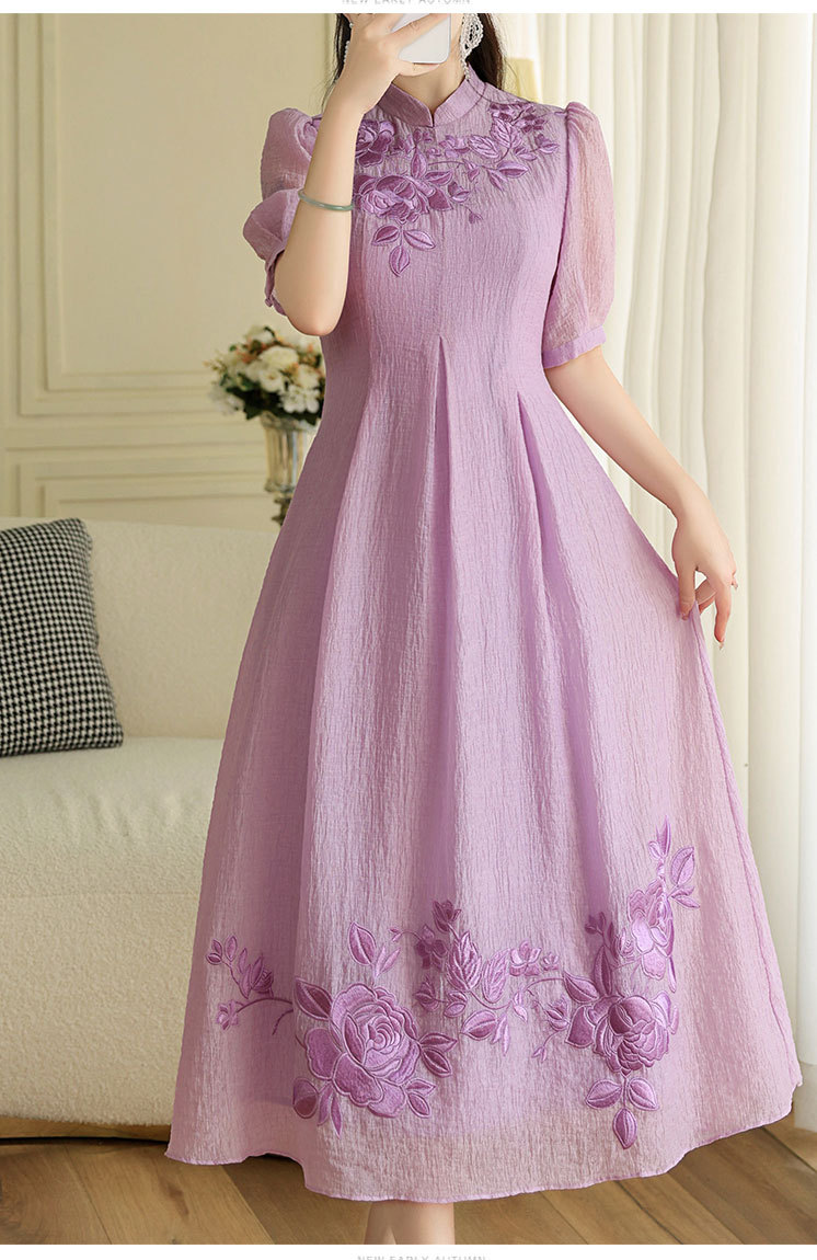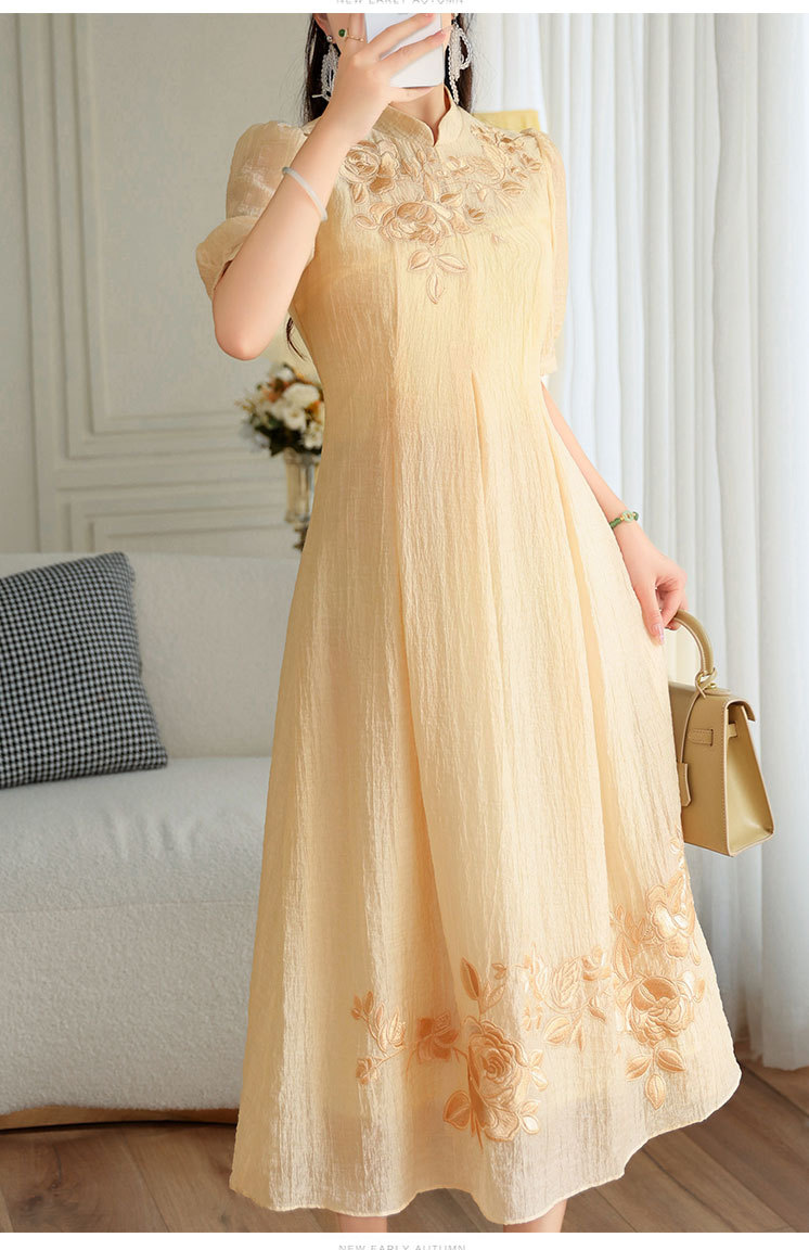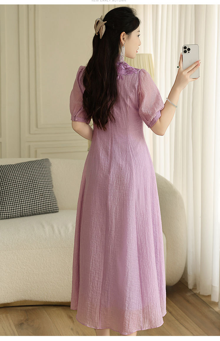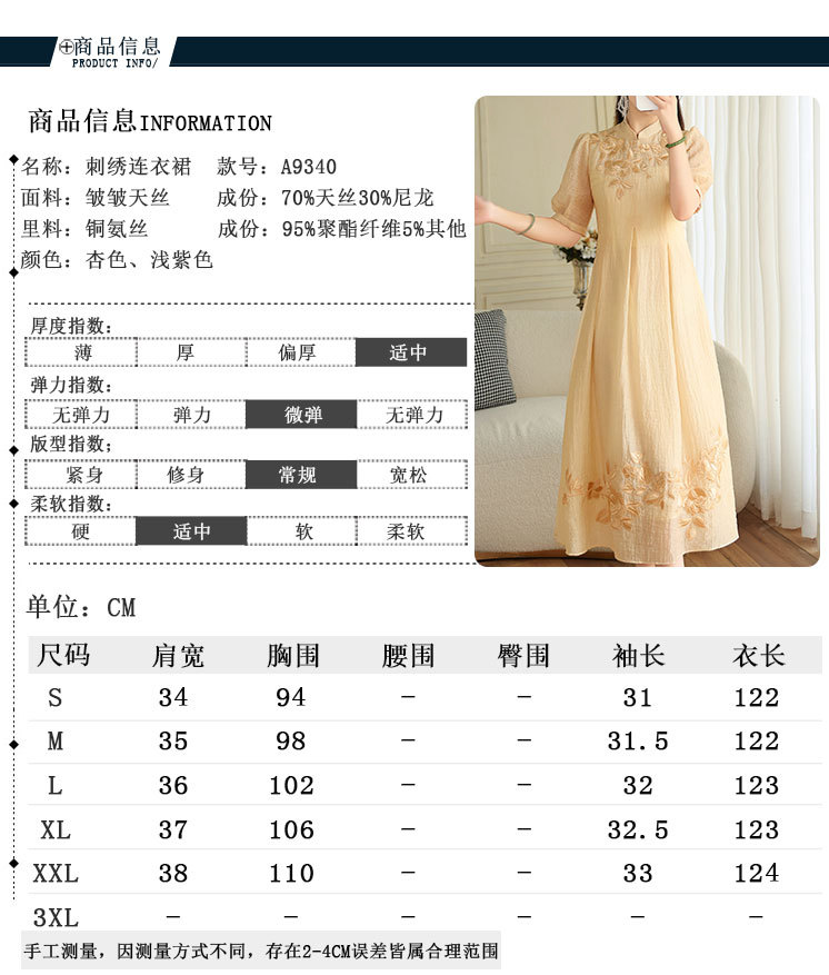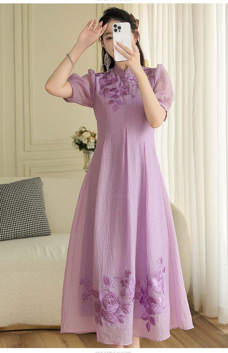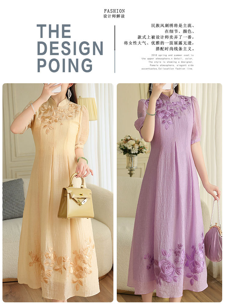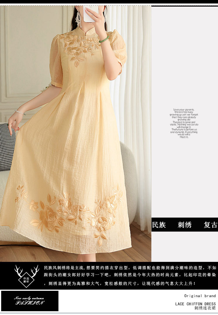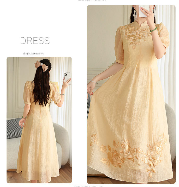 新中式国风,旗袍改良式收腰裙夏季短袖气质年轻款连衣长裙OG-9340