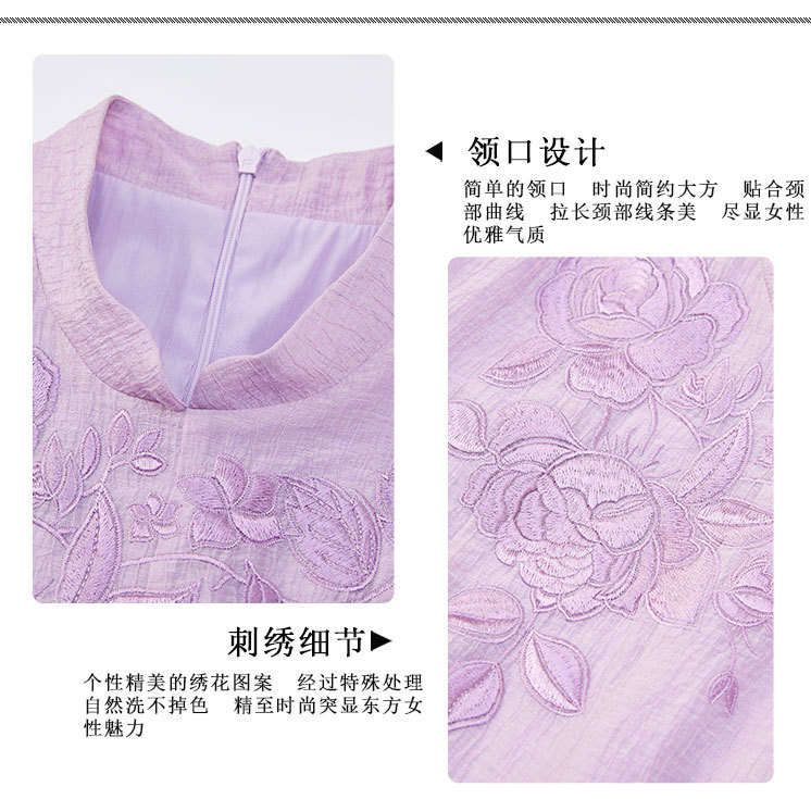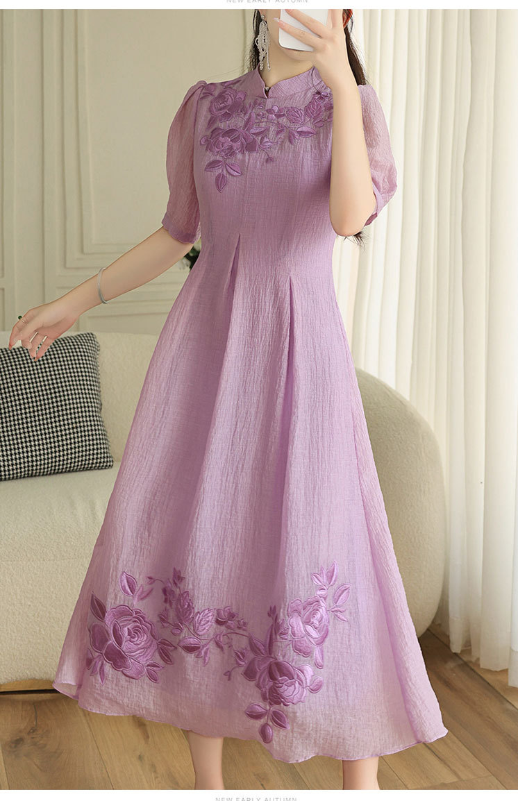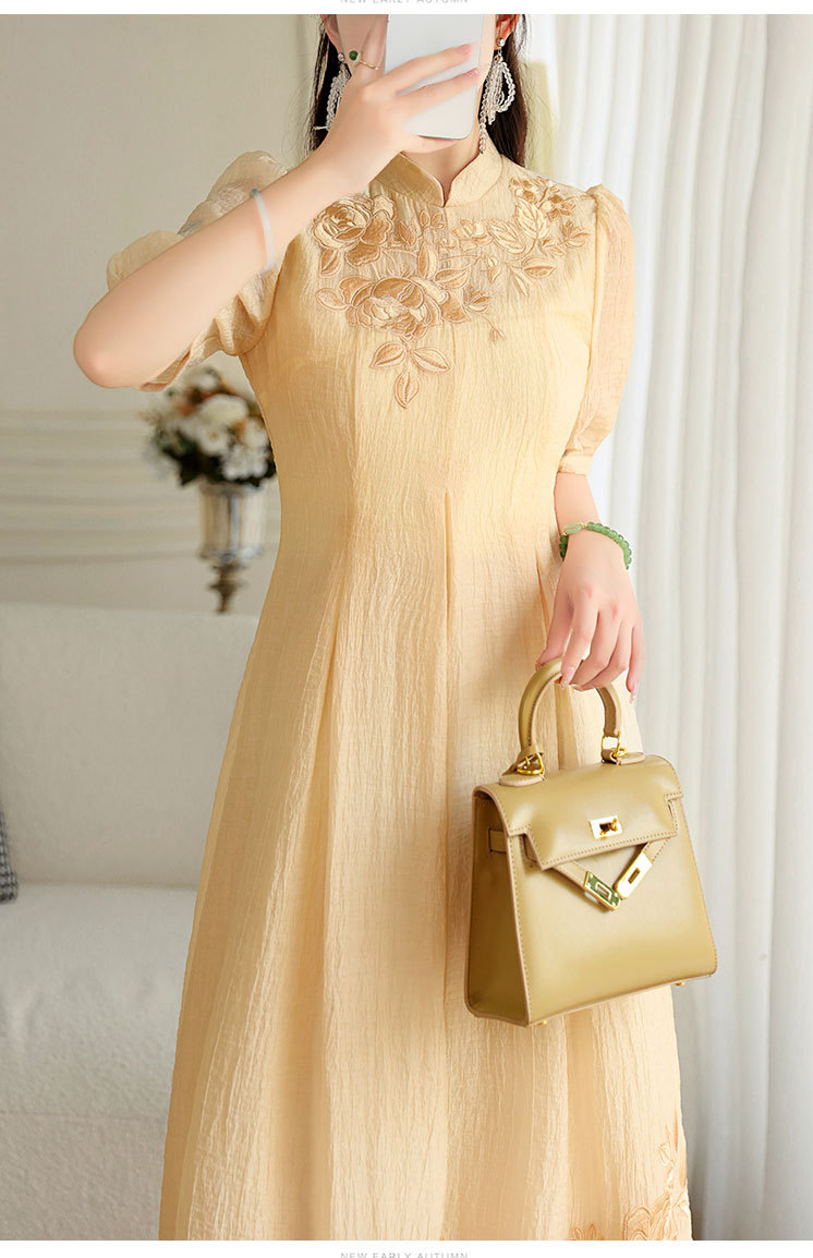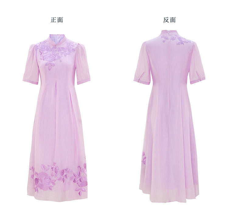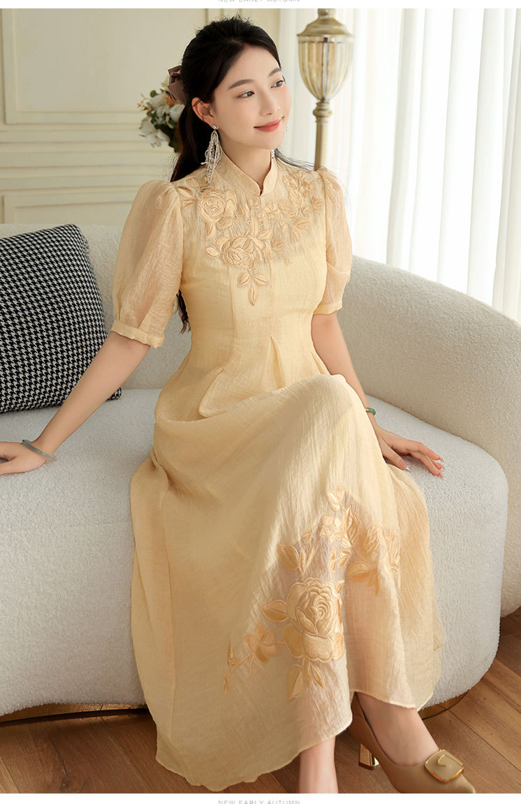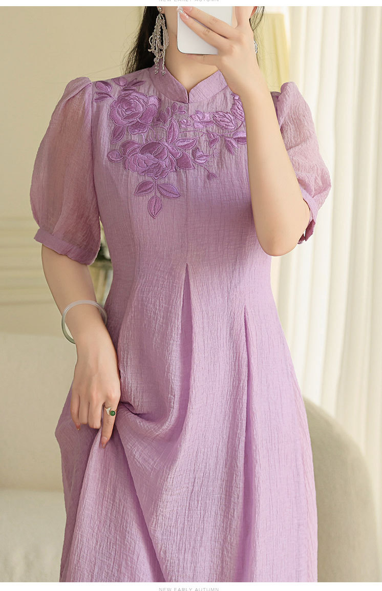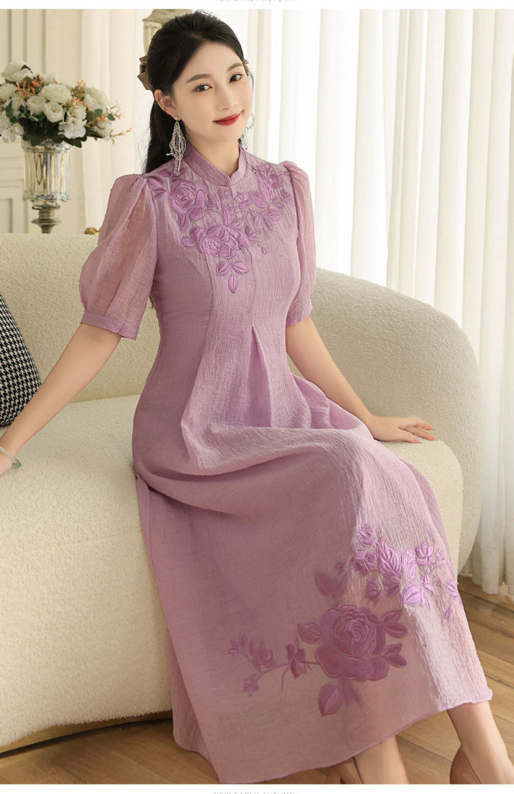 新中式国风,旗袍改良式收腰裙夏季短袖气质年轻款连衣长裙OG-9340