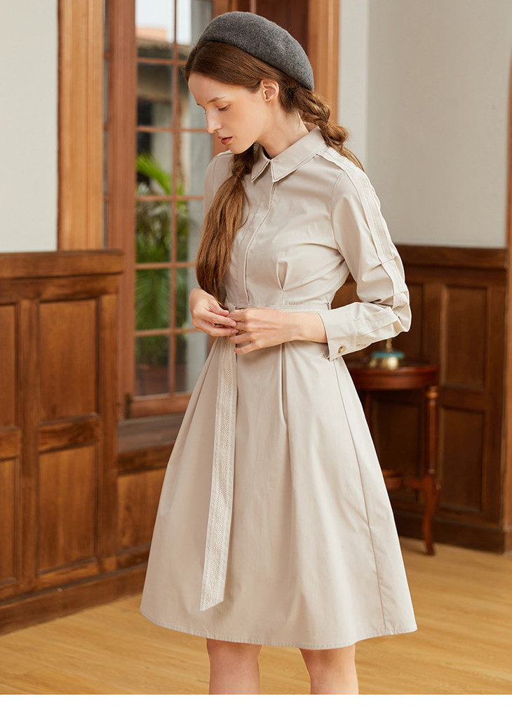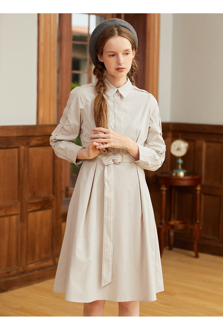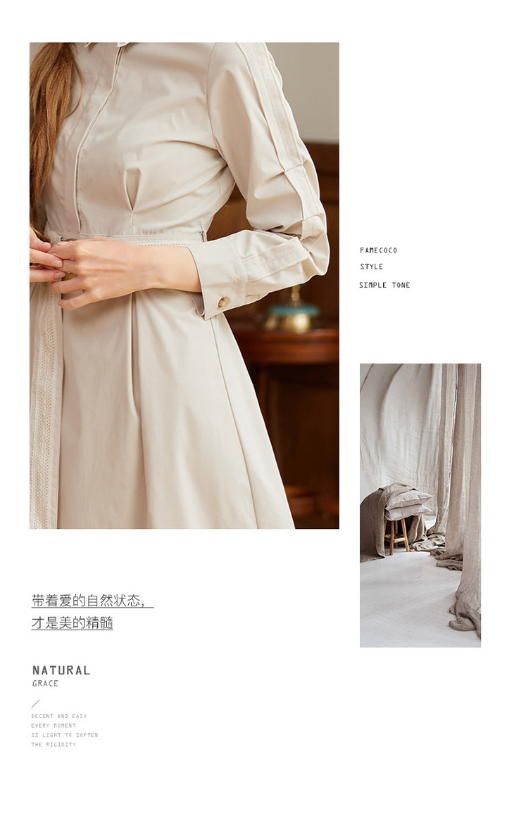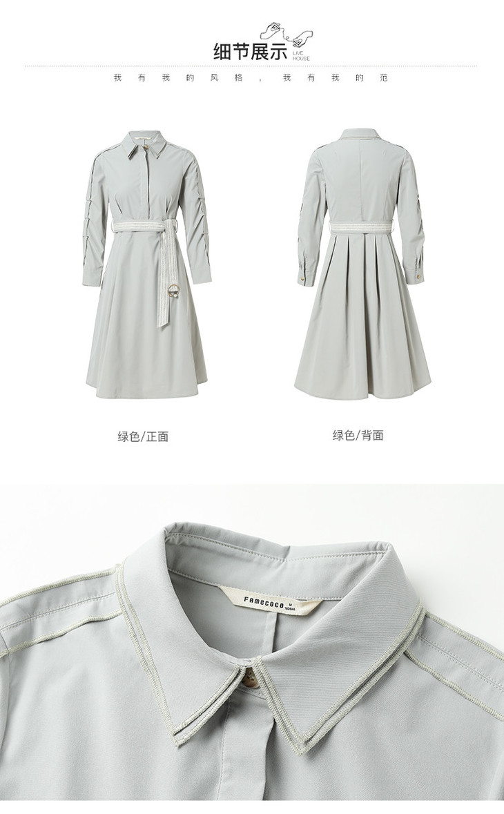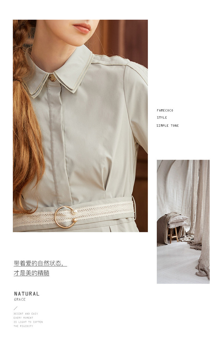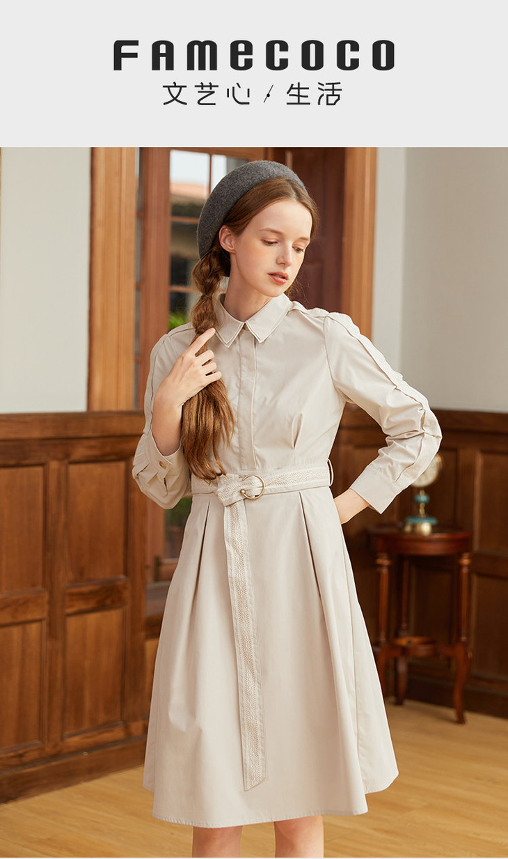 famecoco范可儿蕾丝腰带衬衫裙春秋季气质大方收腰显瘦猎装式连衣裙F211FA004
