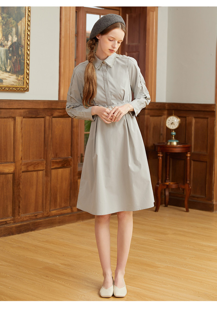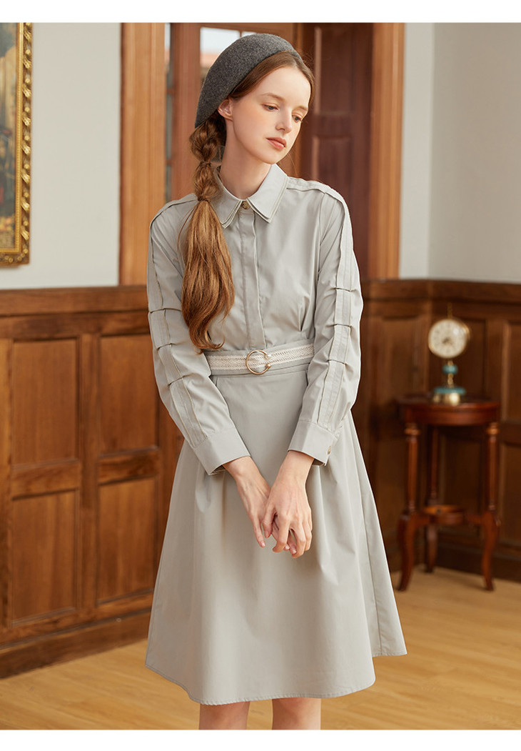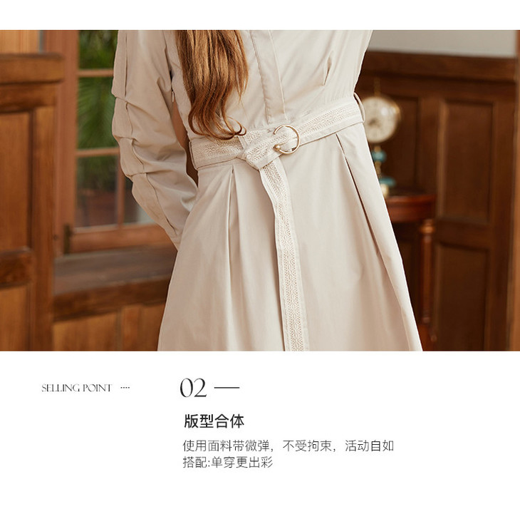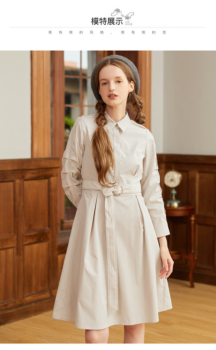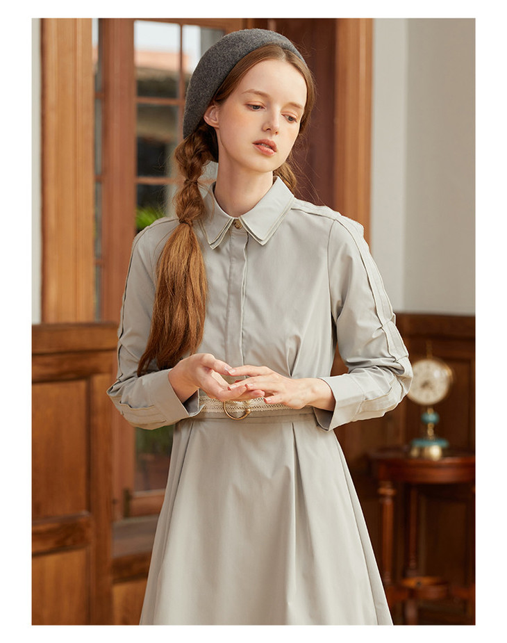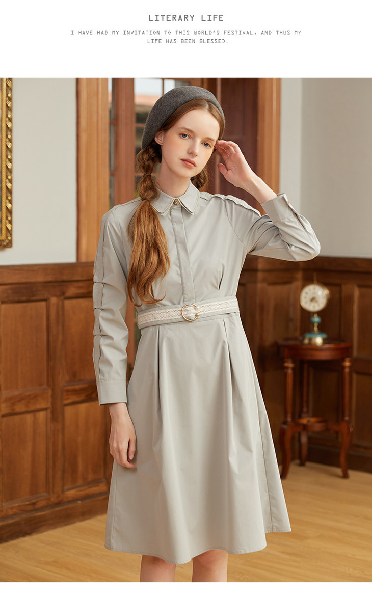 famecoco范可儿蕾丝腰带衬衫裙春秋季气质大方收腰显瘦猎装式连衣裙F211FA004