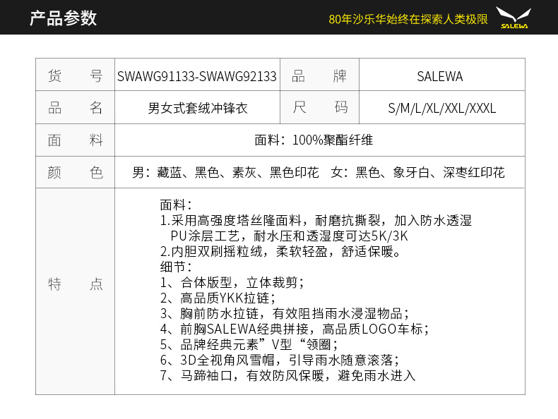 SALEWA沙乐华/女式套绒冲锋衣 SWAWG92133