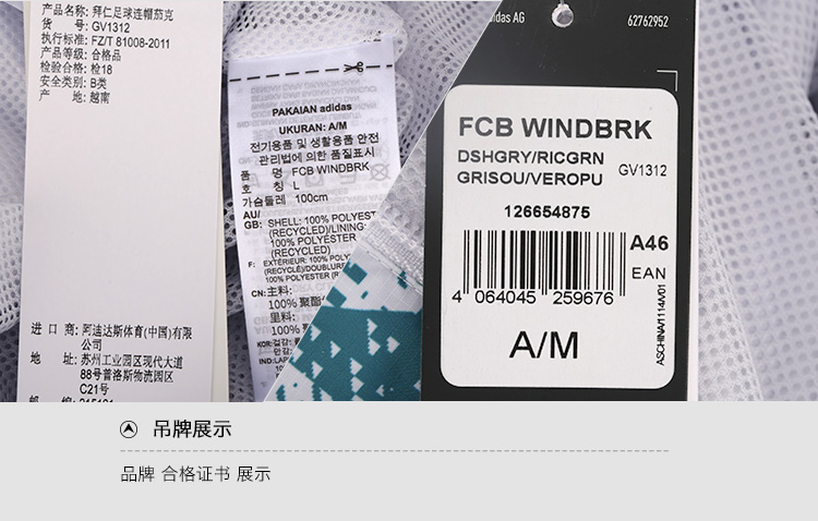 ADIDAS/阿迪达斯 FCB WINDBRK拜仁梭织风衣GV1312