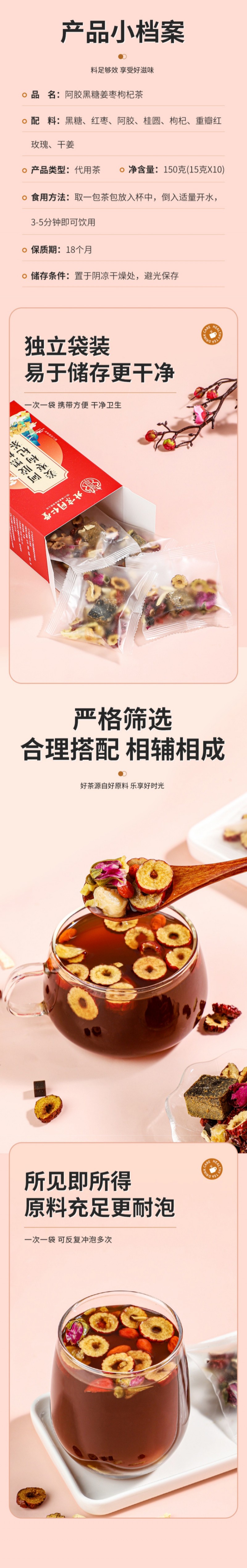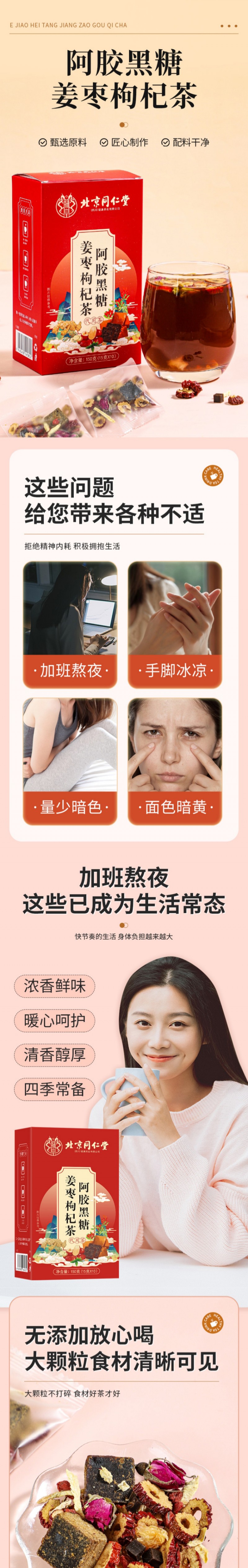北京同仁堂阿胶黑糖姜枣枸杞茶150g(15g*10)*2盒