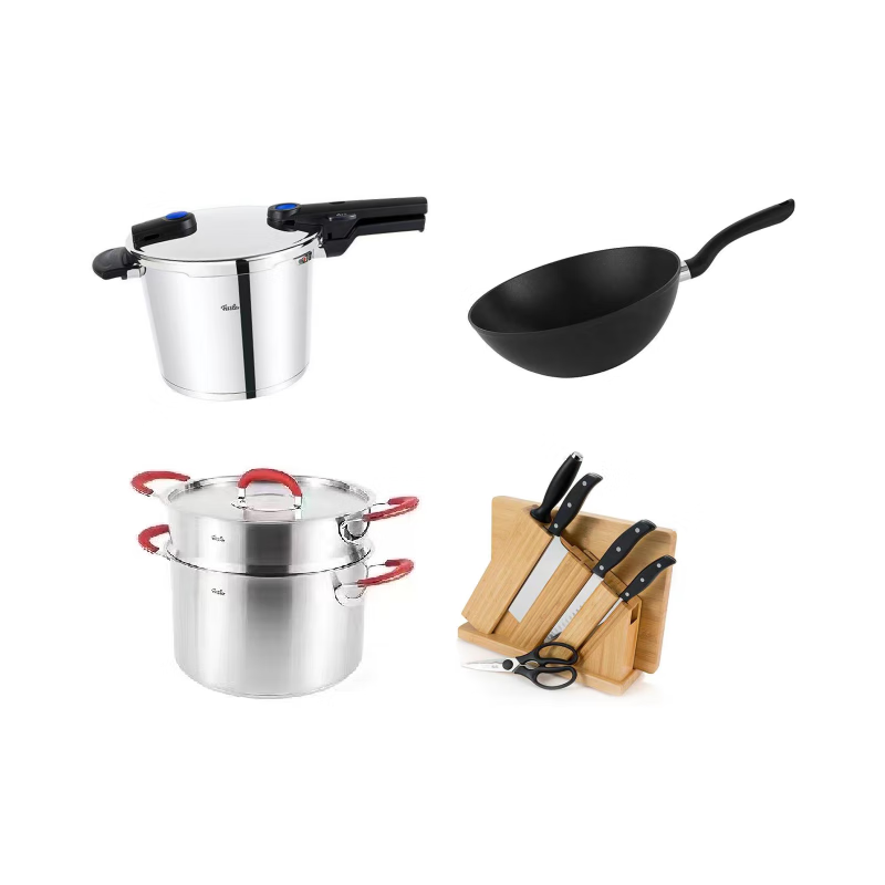 6L味达快高速快锅+黑骑士30厘米深型不粘煎炒锅+小红柄24厘米深汤锅+小红柄24厘米汤锅配套蒸屉+精致系列七件套刀