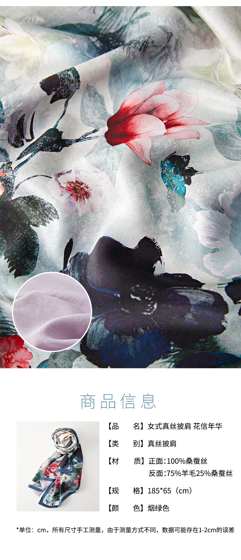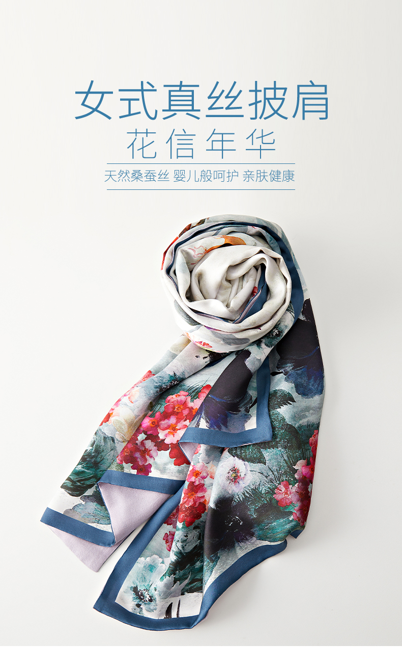 SAINTJOY/上久楷真丝披肩 女式真丝披肩 花信年华 PJS21001-1