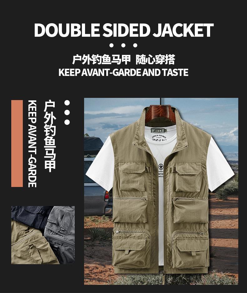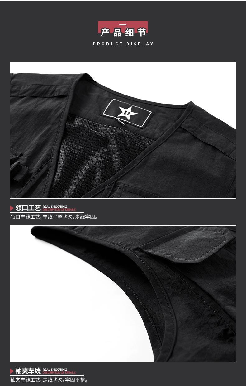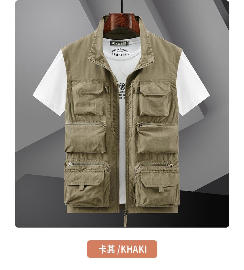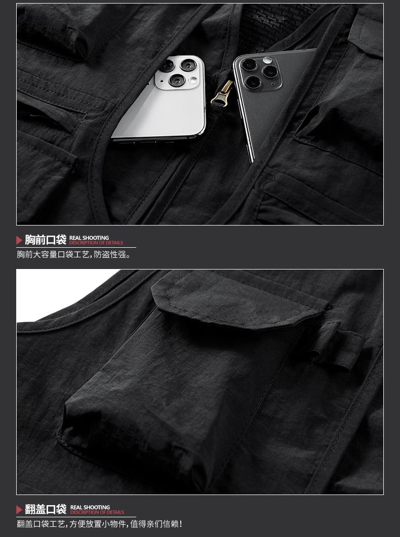 多口袋工装男士马甲背心2023春秋款休闲薄款钓鱼坎肩外穿无袖开衫