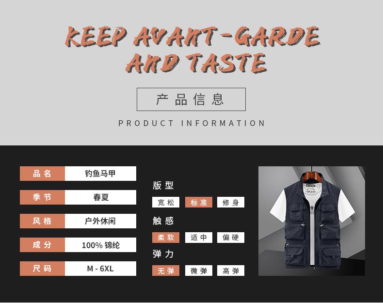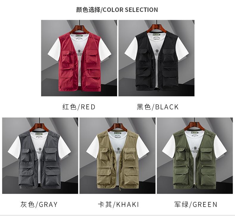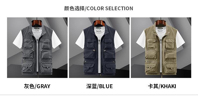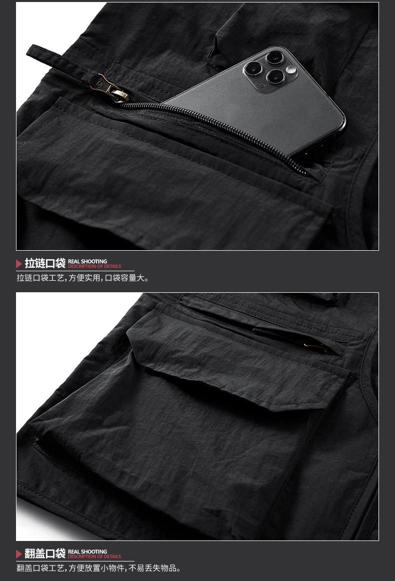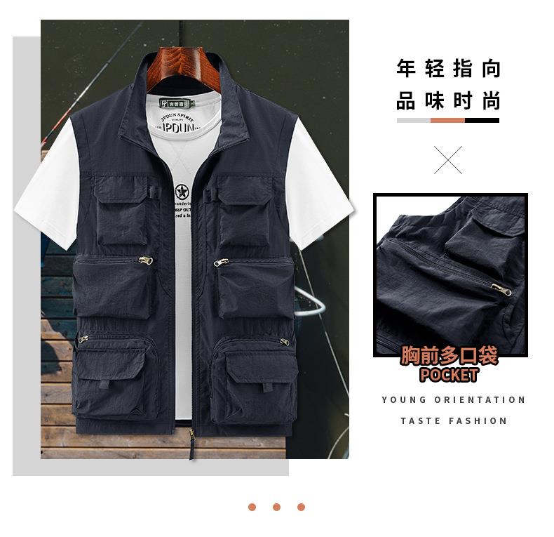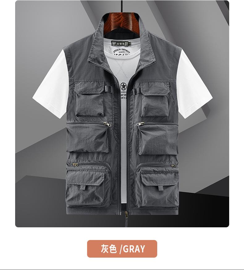 多口袋工装男士马甲背心2023春秋款休闲薄款钓鱼坎肩外穿无袖开衫