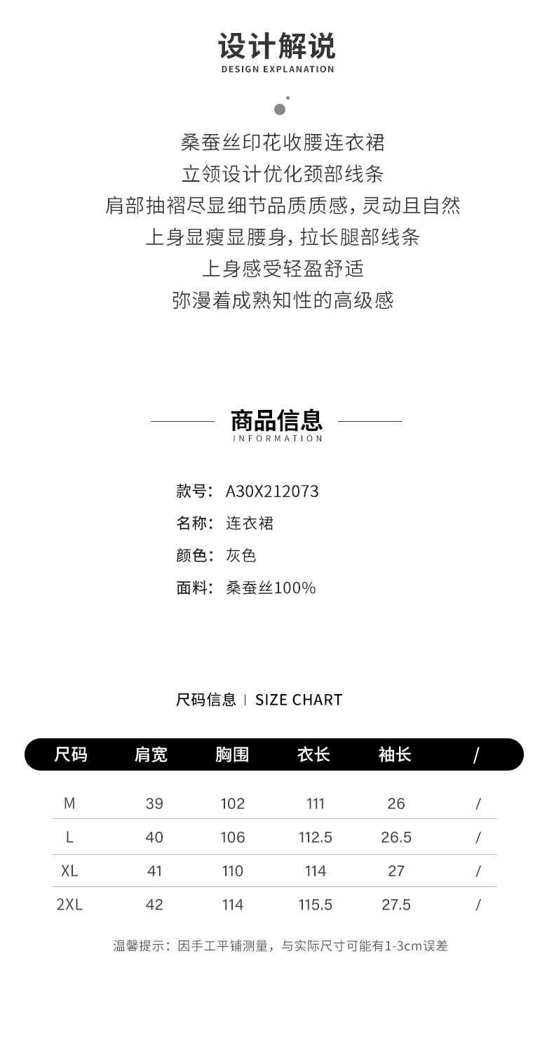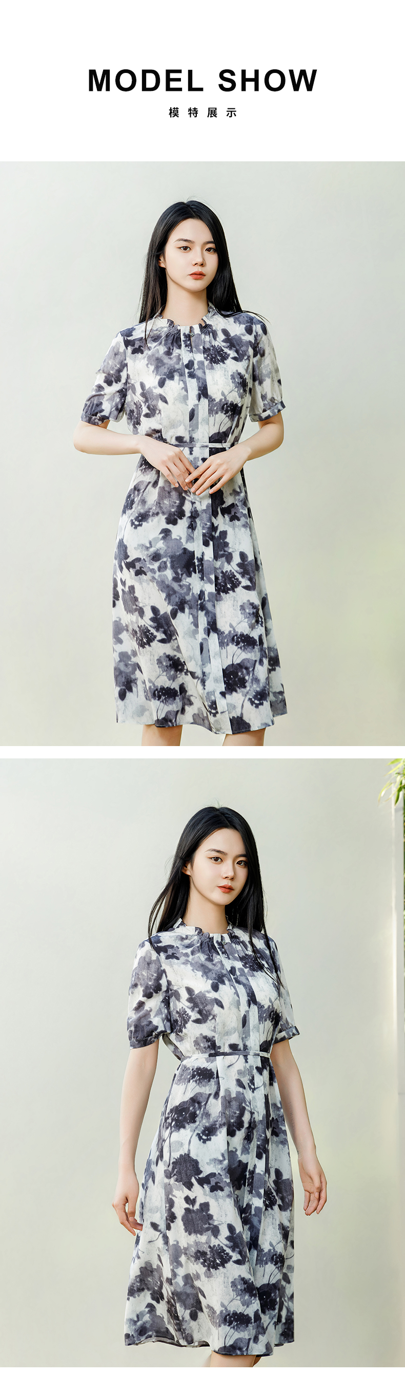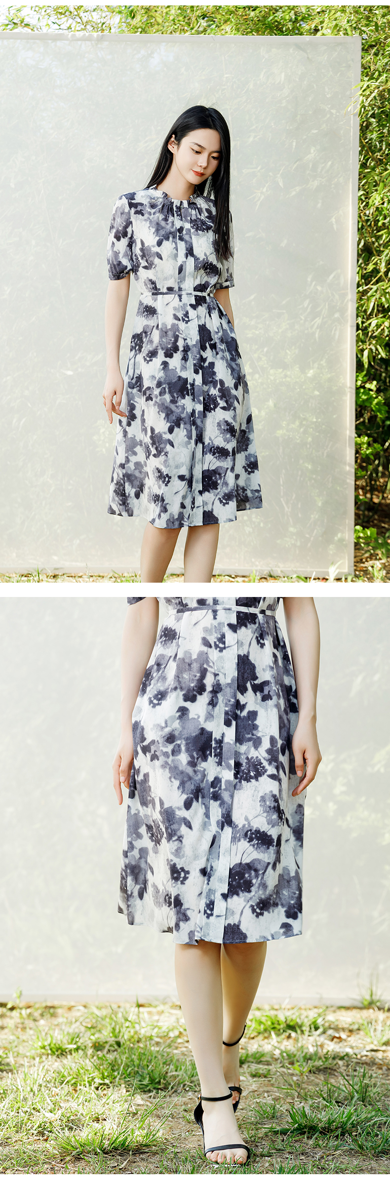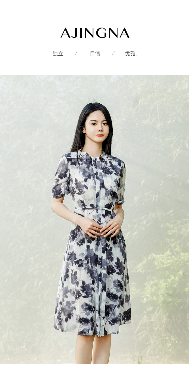 【商场同款】阿菁娜2024夏季新款桑蚕丝印花收腰连衣裙A30X212073