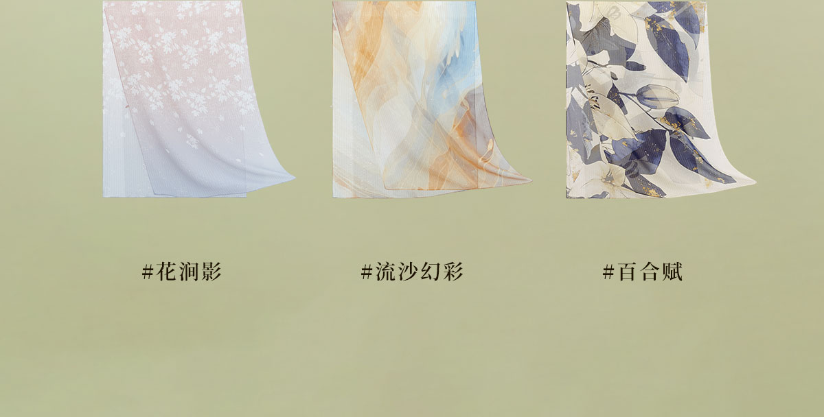 万事利“花涧影、流沙幻彩、百合赋”WL长巾
