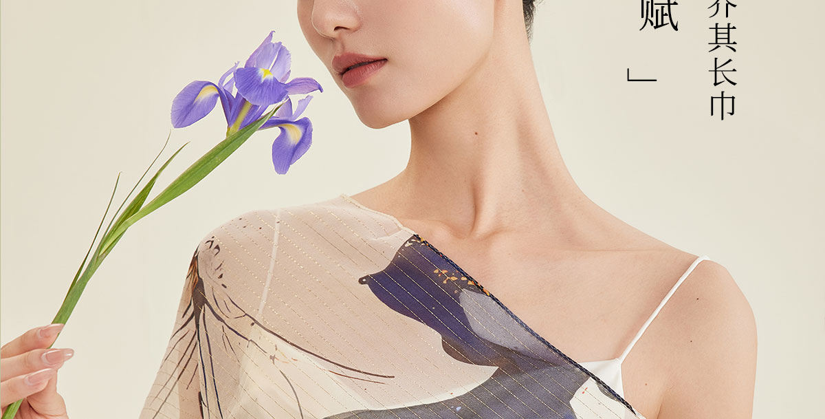 万事利“玉兰赋”63厘米双面印花真丝中方巾