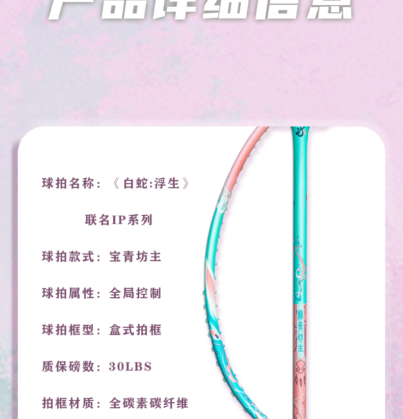 的幸白蛇浮生宝青坊主全碳素专业羽毛球拍单拍套装礼盒装
