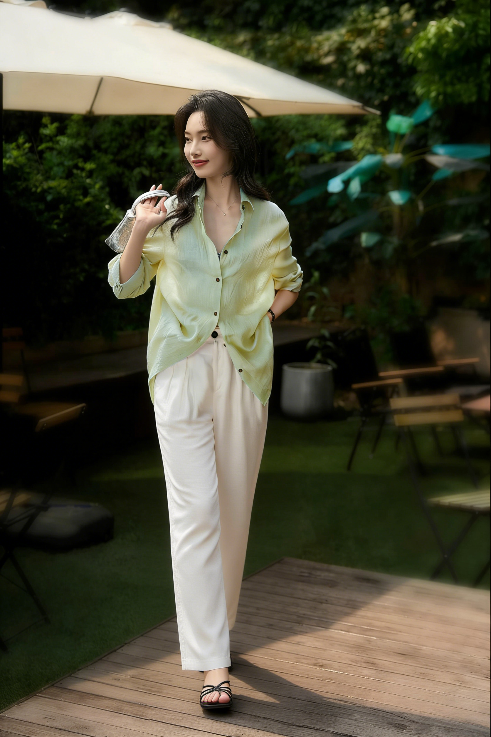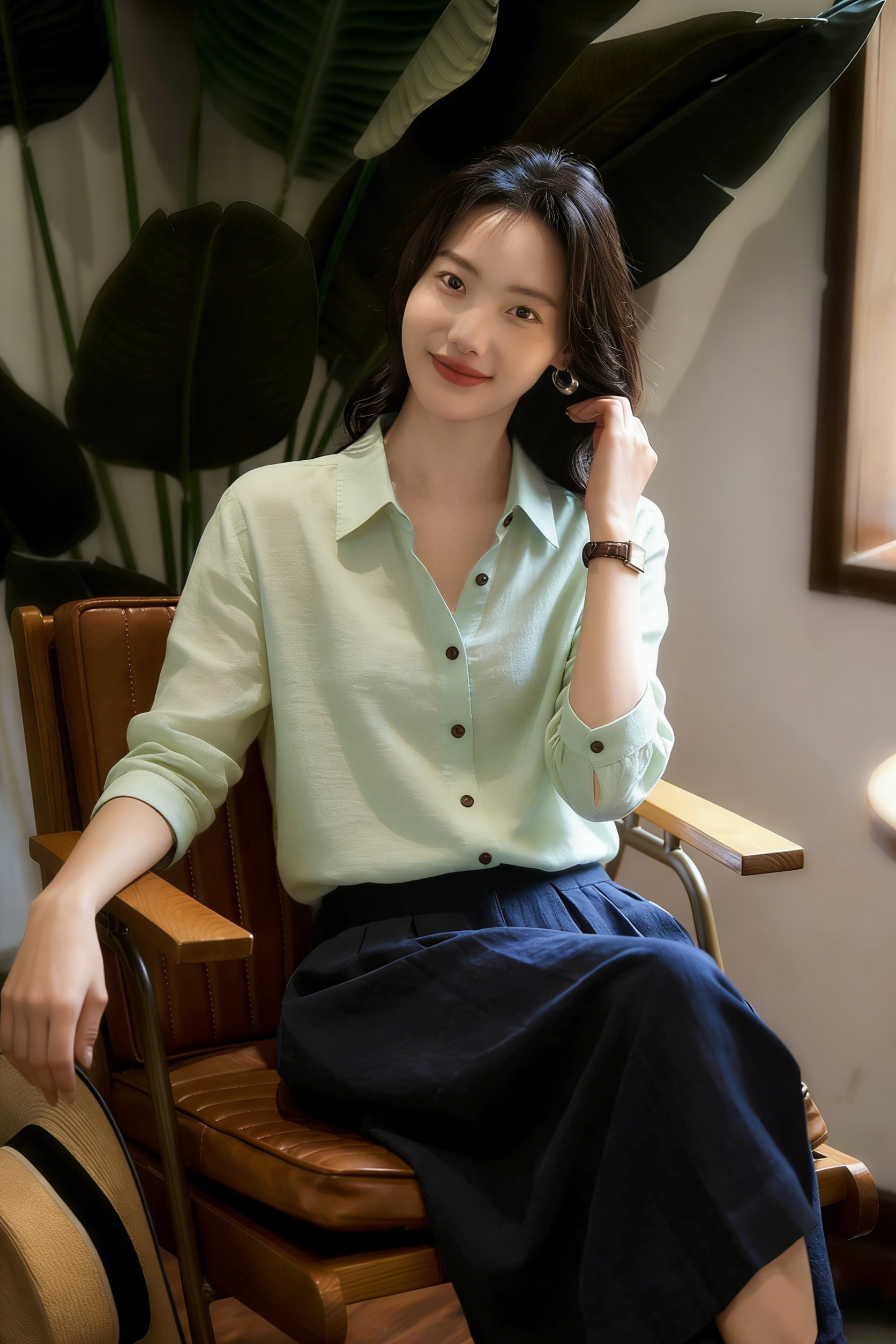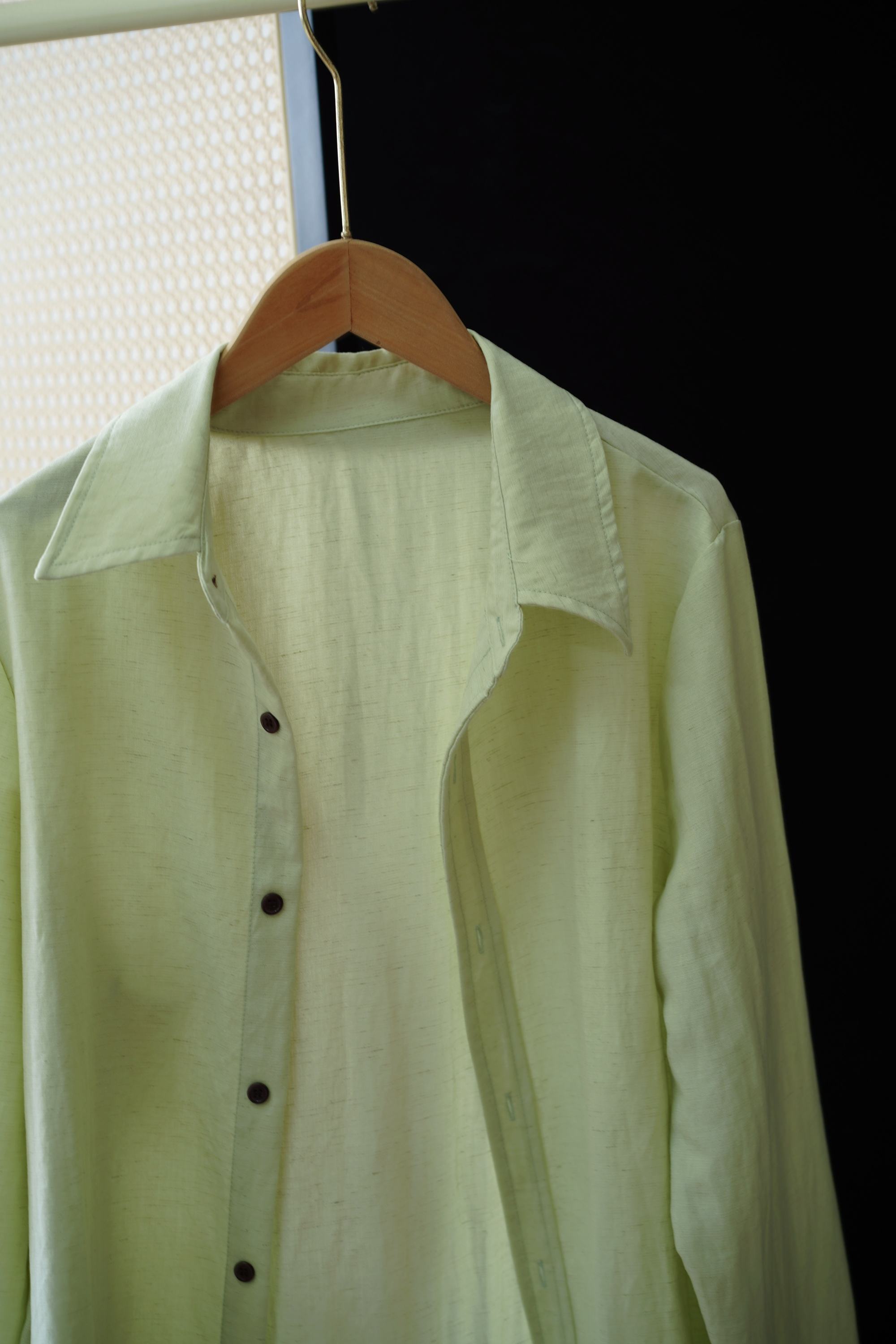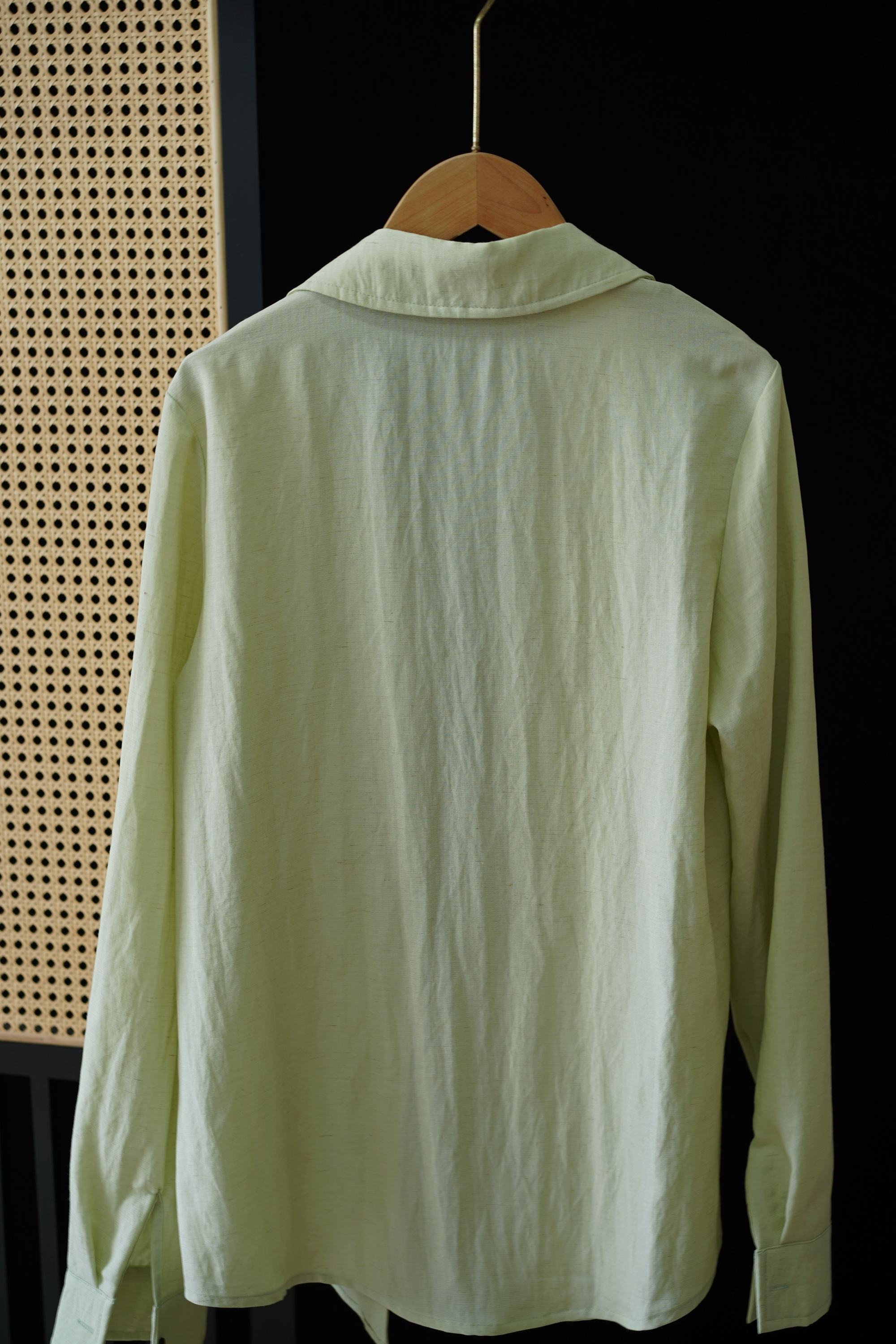 【3-7天发货】松弛感拉满的夏日刚需,烟熏紫&曼波绿天丝亚麻长袖衬衫,显白微宽松版型藏肉,翻领设计修饰脖颈线条,单穿叠穿都高级