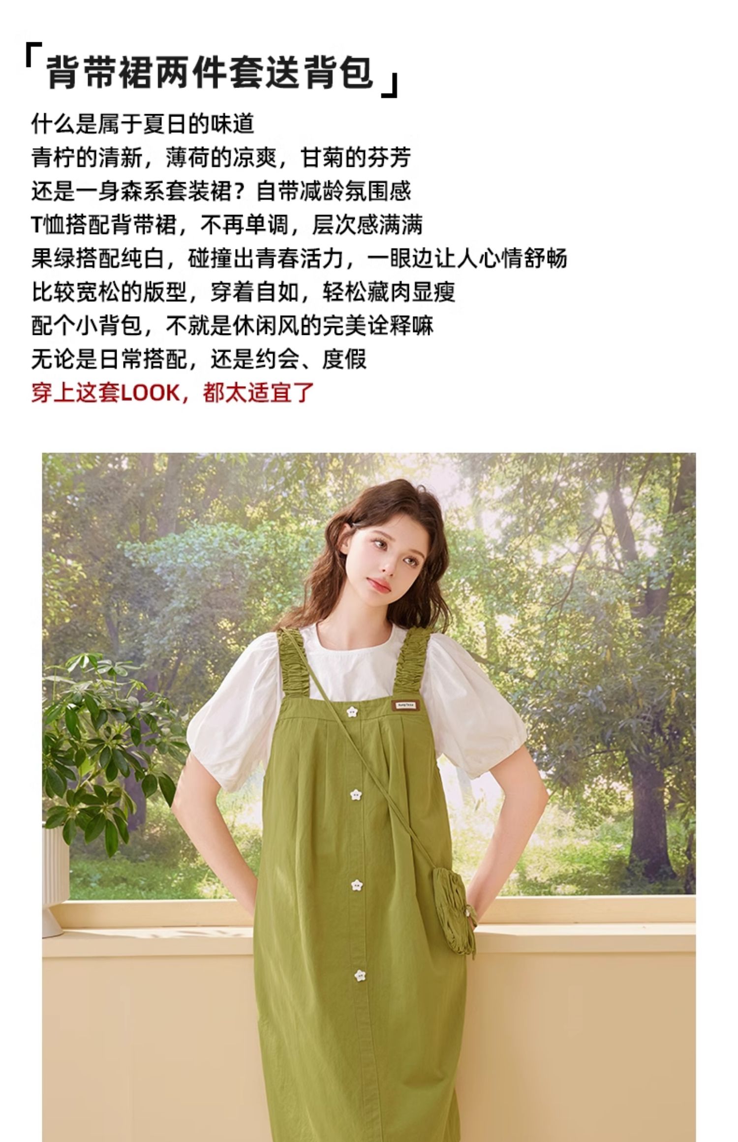 mc2可爱风短袖配背带裙两件套(送背包)2024夏季新款小清新穿搭
