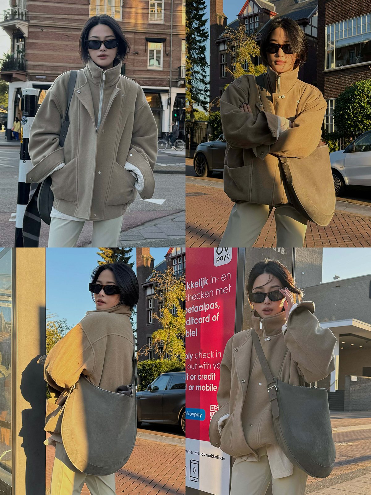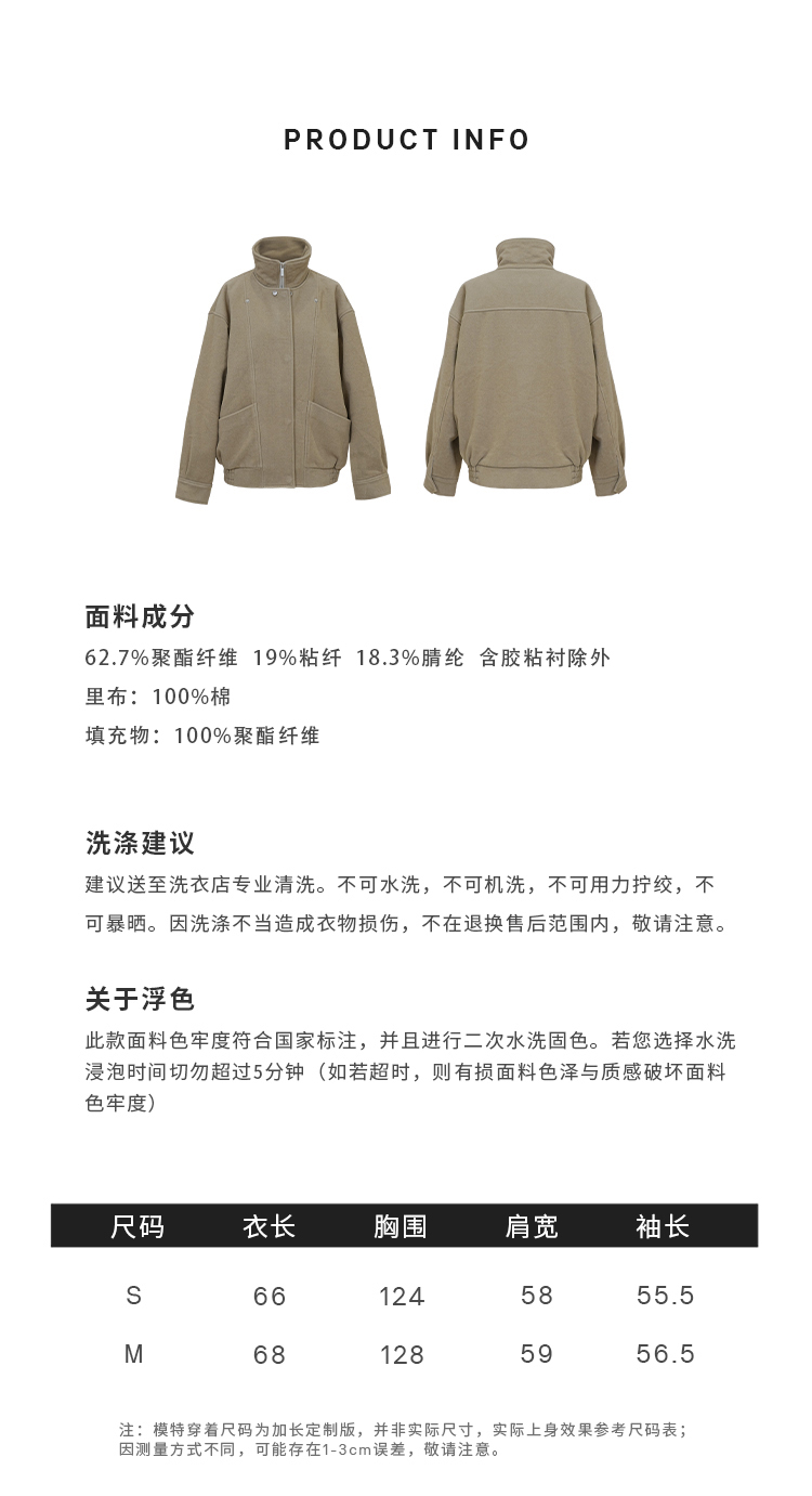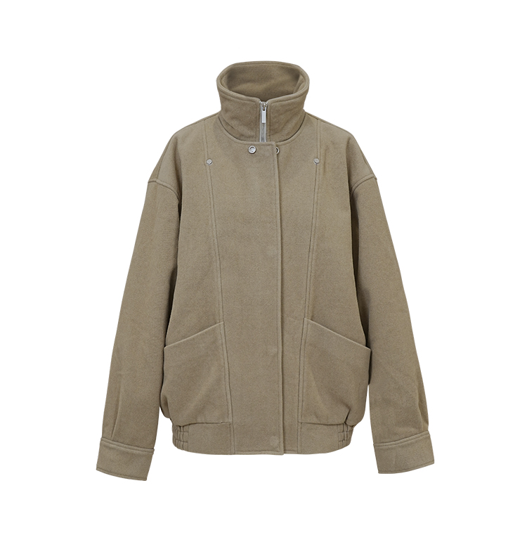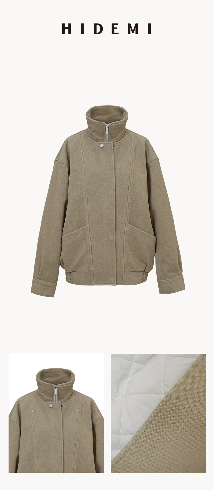 HIDEMI 假两件拉链式立领口袋飞行员设计感夹克外套大衣