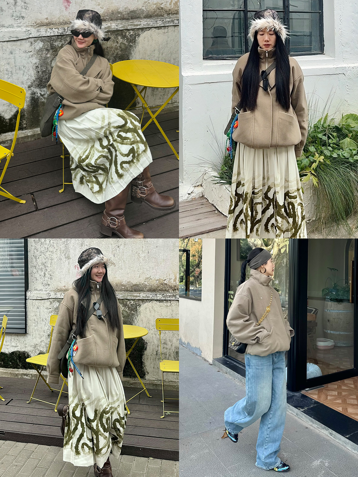 HIDEMI廓形一粒扣圈圈羊毛短款大衣/外套