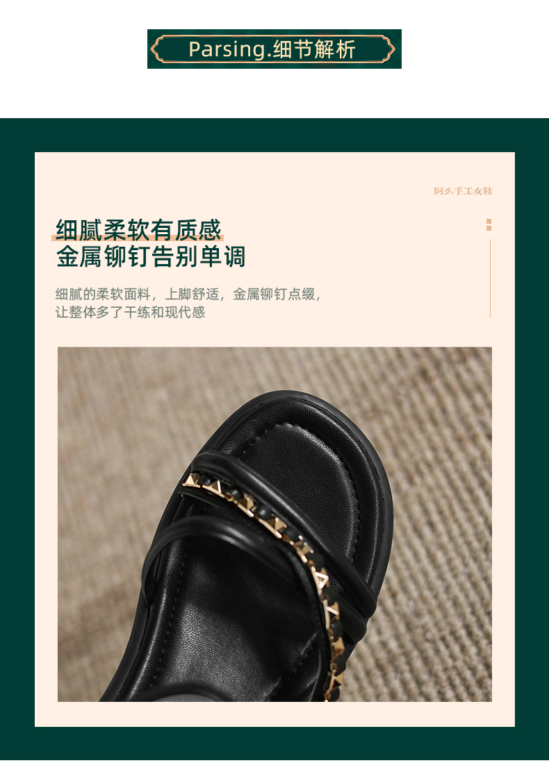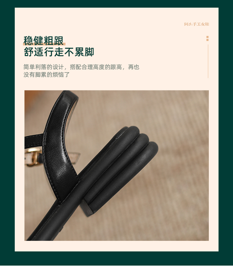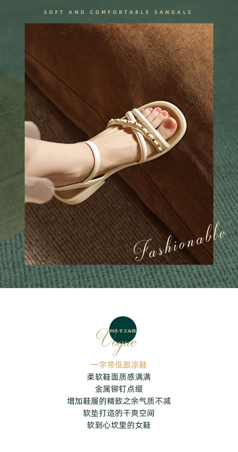 阿么手工女鞋夏季新款外穿软底露趾一字带凉鞋女款仙女风百搭3CM