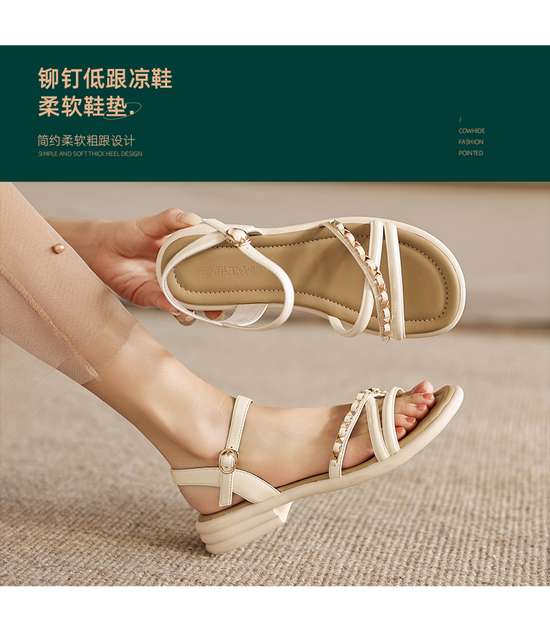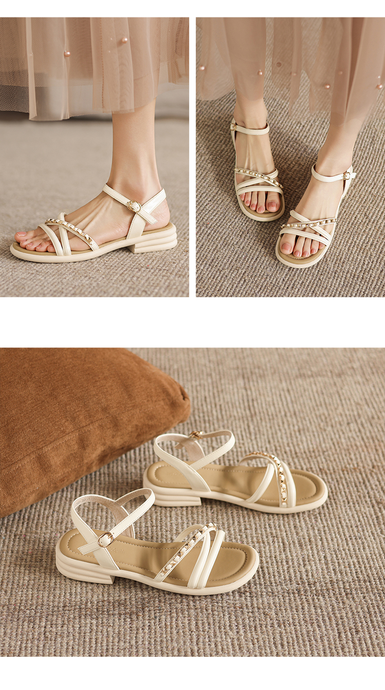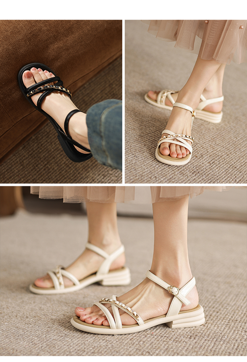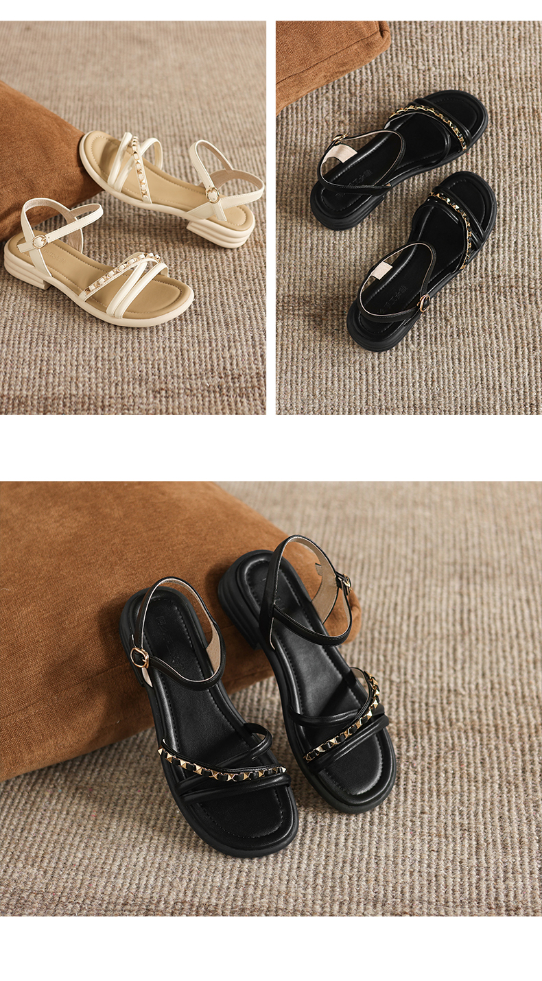 阿么手工女鞋夏季新款外穿软底露趾一字带凉鞋女款仙女风百搭3CM