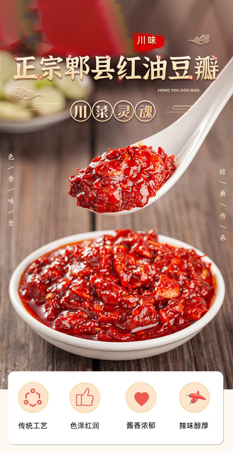【家用炒菜常备调料!瓶装红油豆瓣酱】瓶装四川家用炒菜专用香辣椒酱川菜回锅肉调料-觅食坊健康