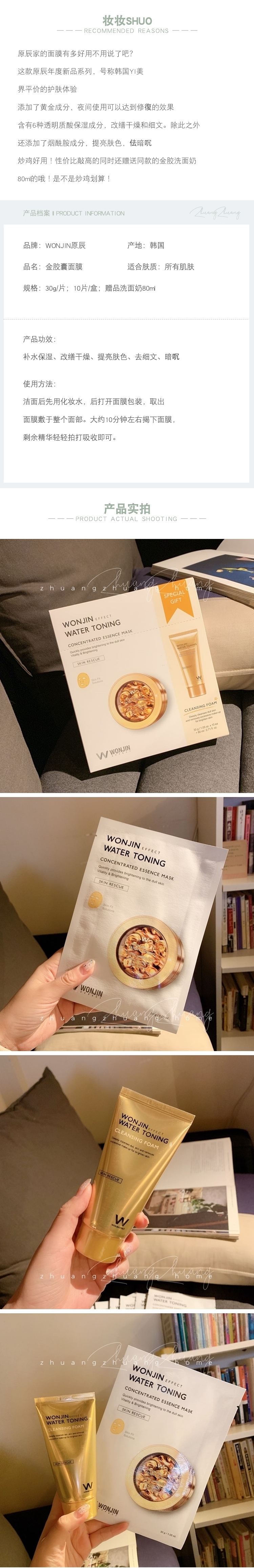 HG 原辰金胶面膜 补水保湿佉暗㕴 提亮去细文 10片/盒 送洗面奶