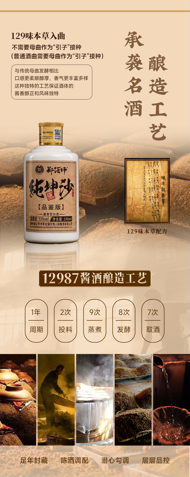 郑酒师.纯坤沙老酒 (品鉴版) 53度100ml六瓶装
