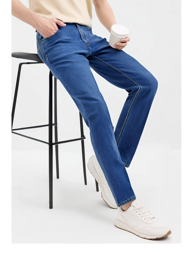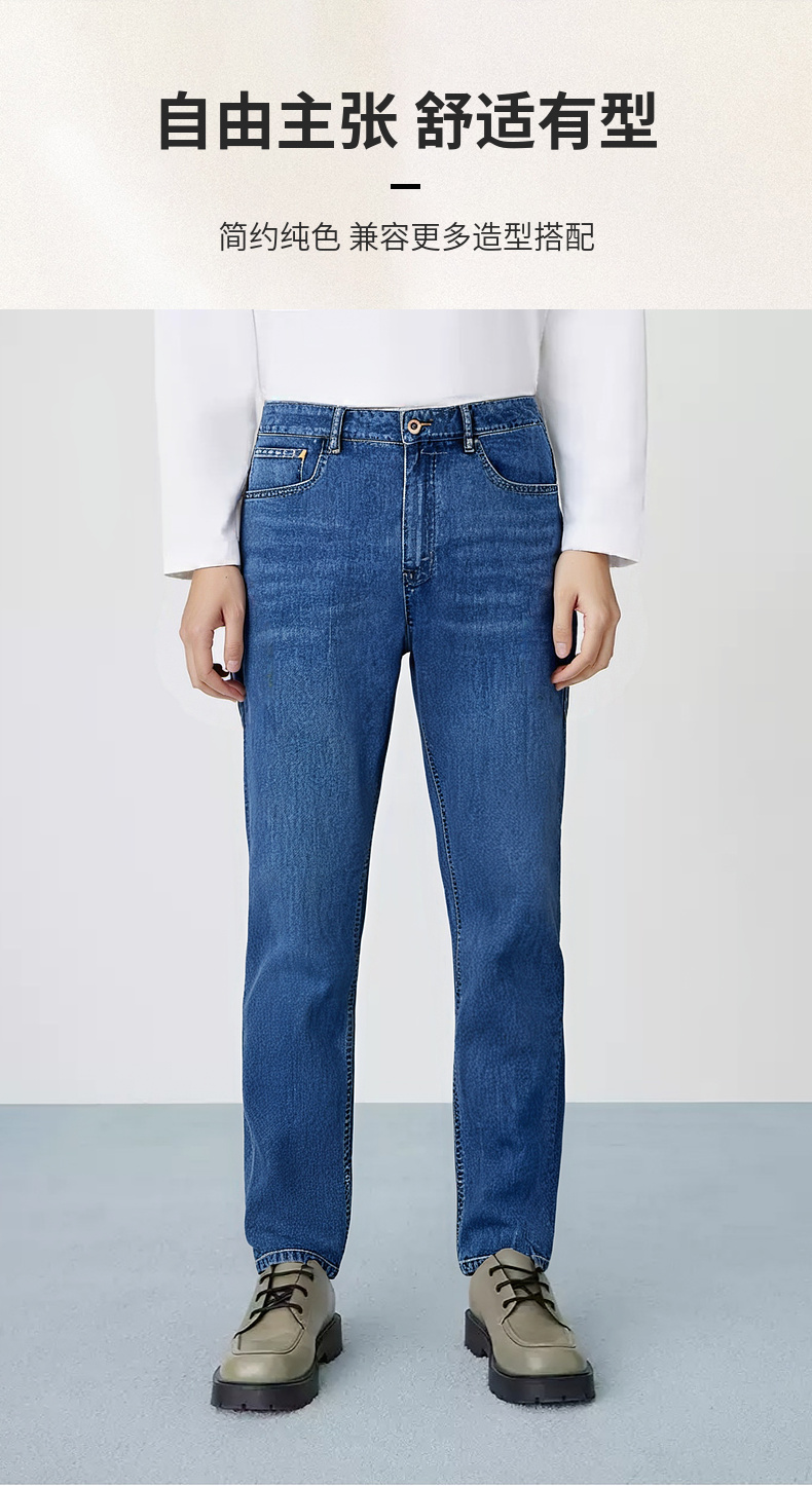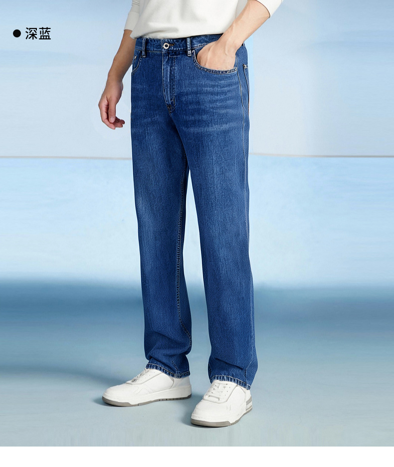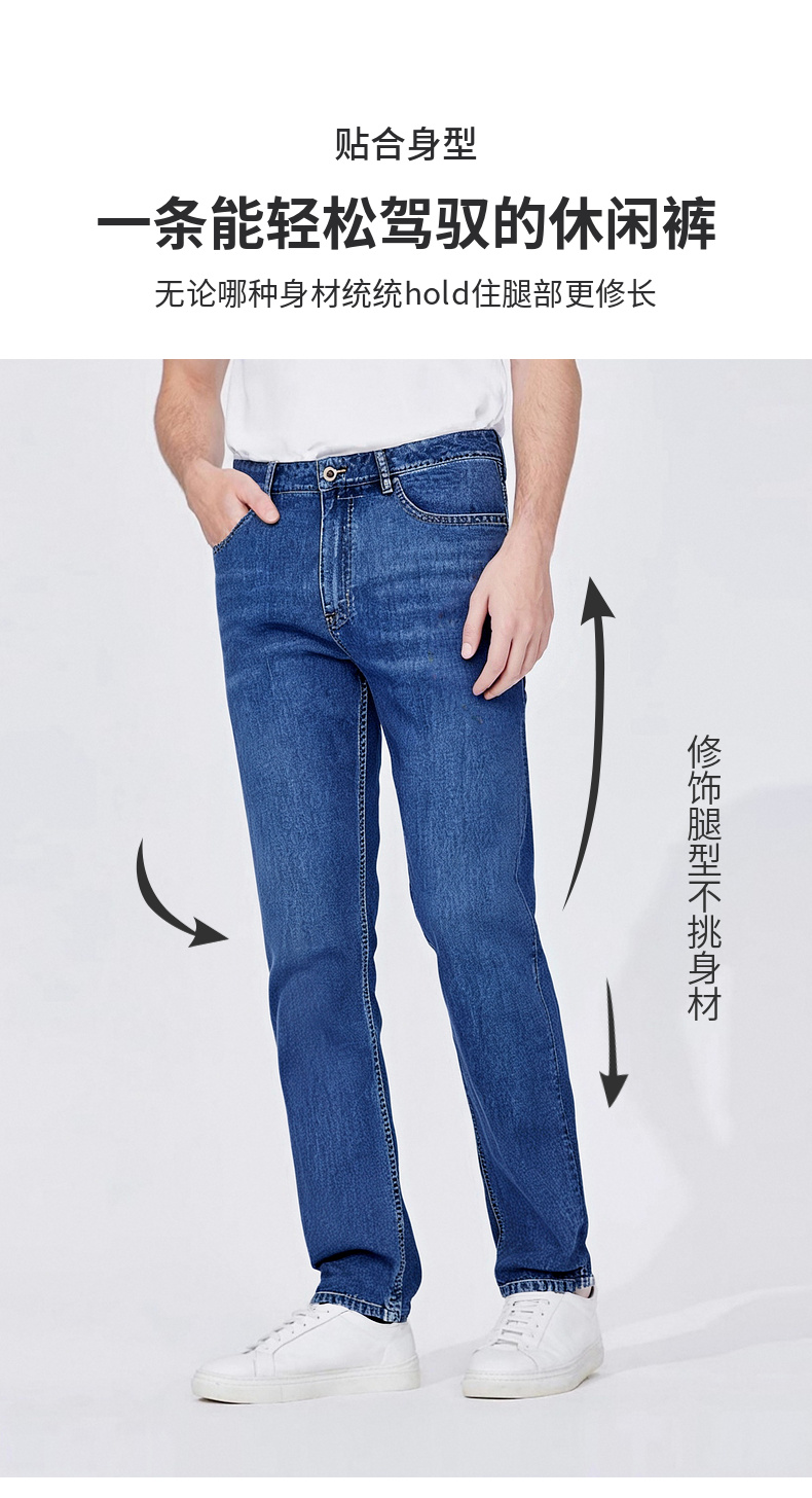 圣得西男士牛仔裤2025年夏季新款易打理棉弹舒适直筒休闲长裤子男