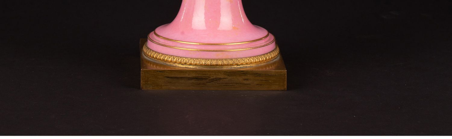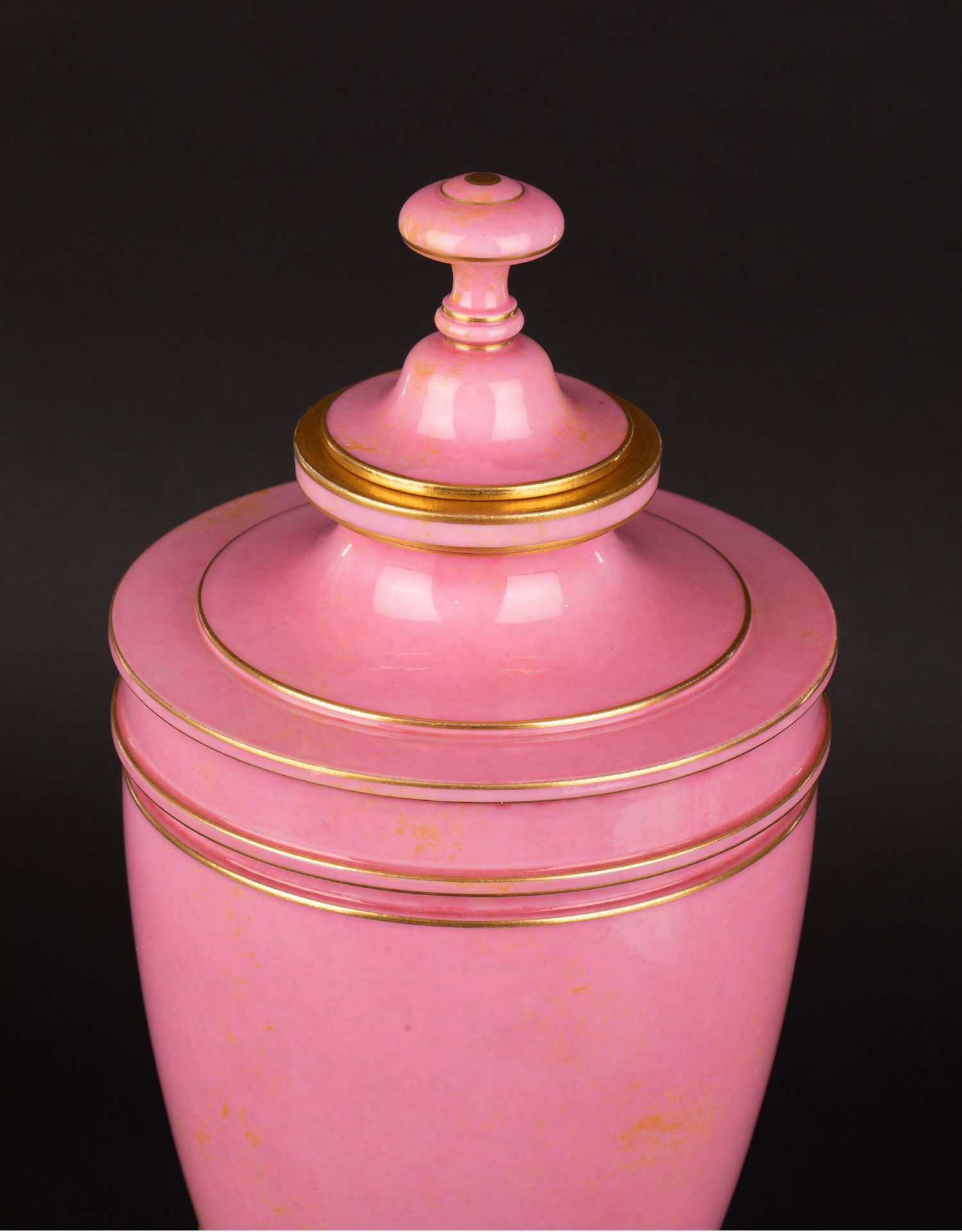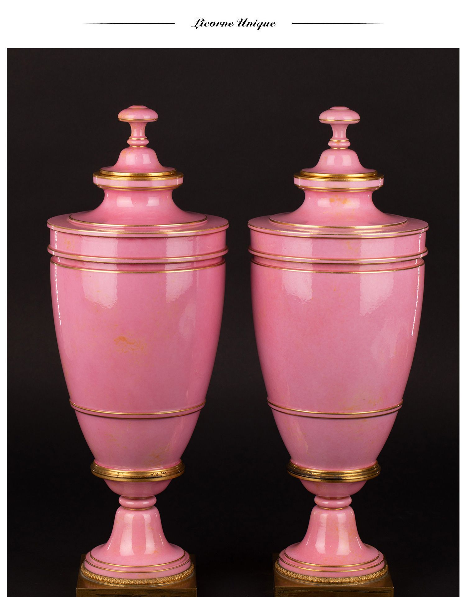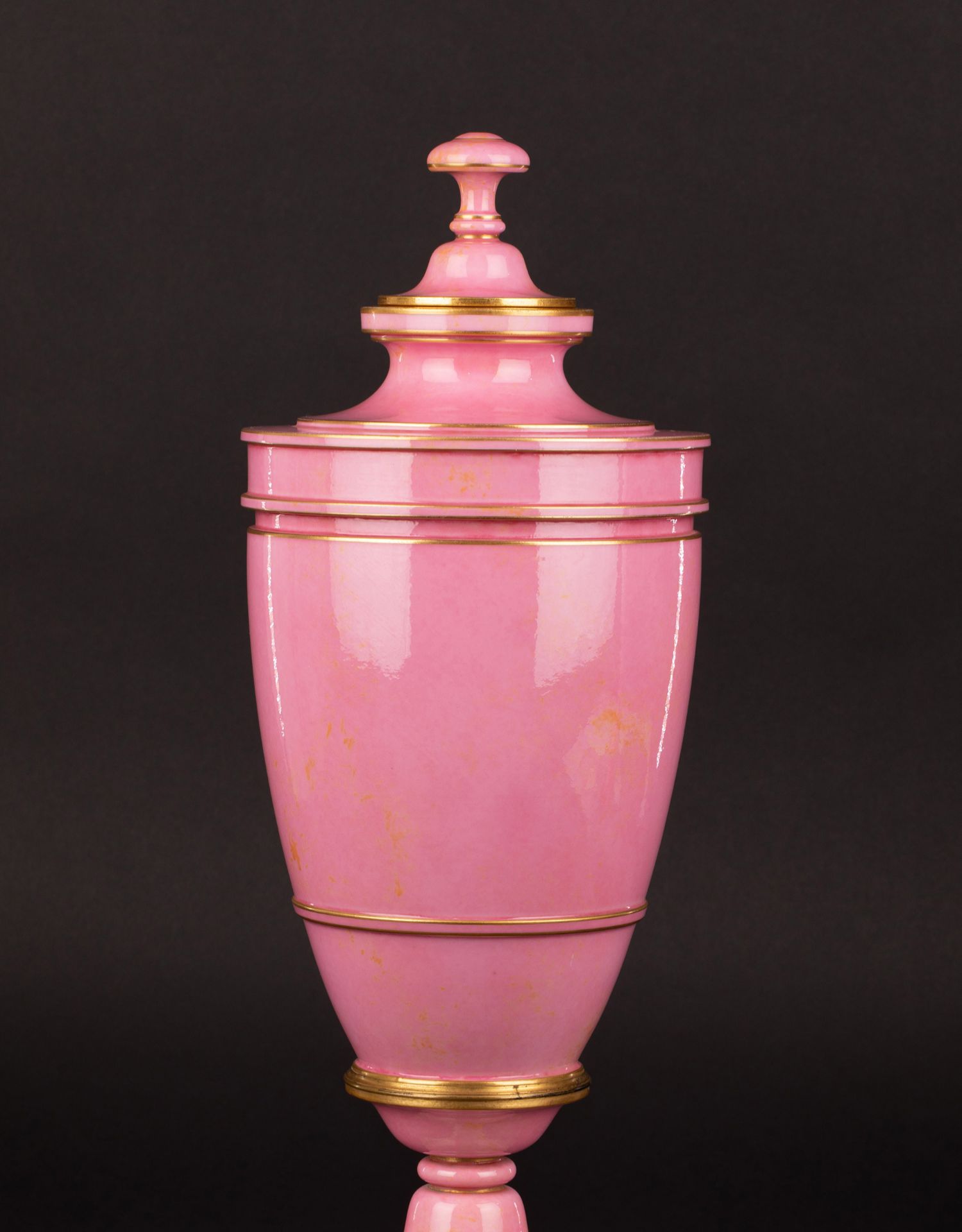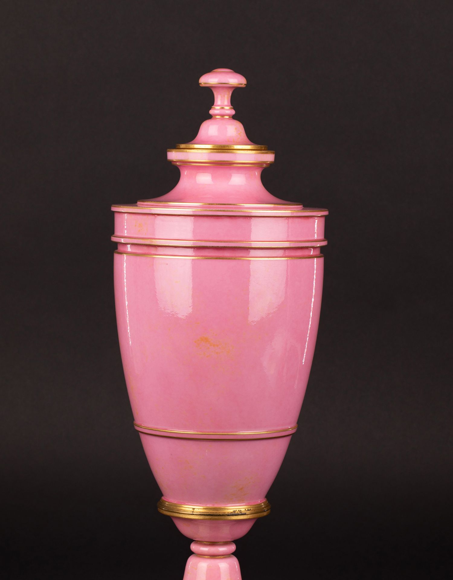 独角鹿西洋古董御窑塞弗尔设计Delafosse器形描金饰粉釉带盖瓷瓶