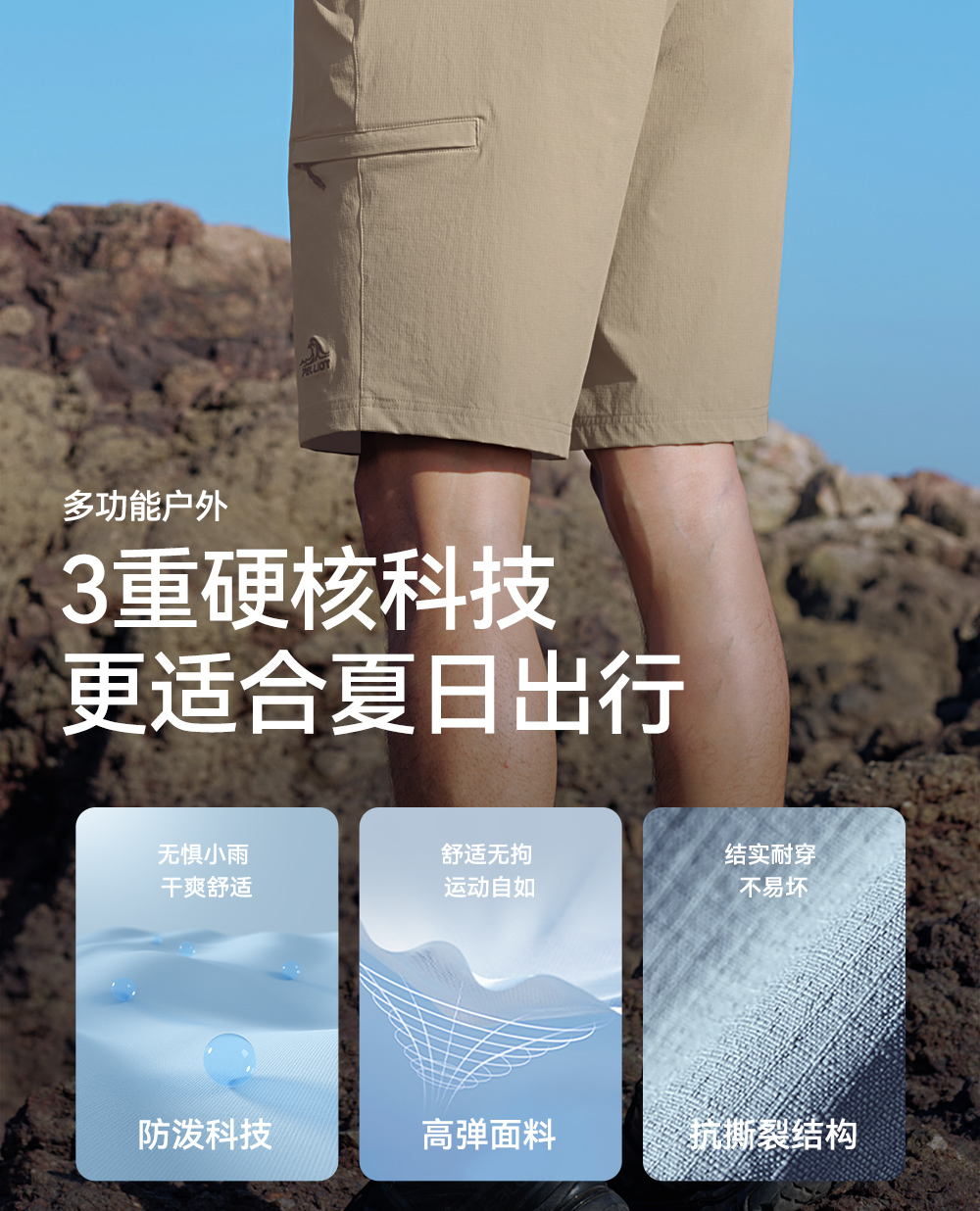 伯希和户外快干裤男士夏季高弹耐磨运动短裤轻薄透气休闲五分裤