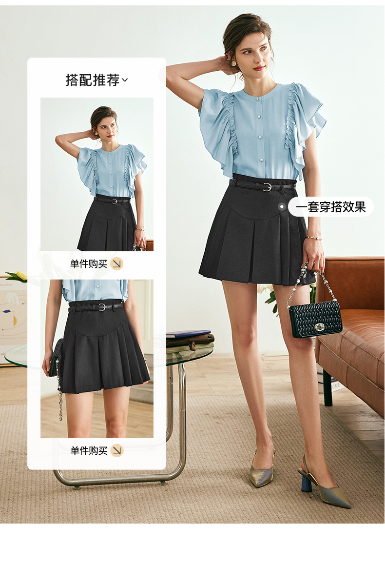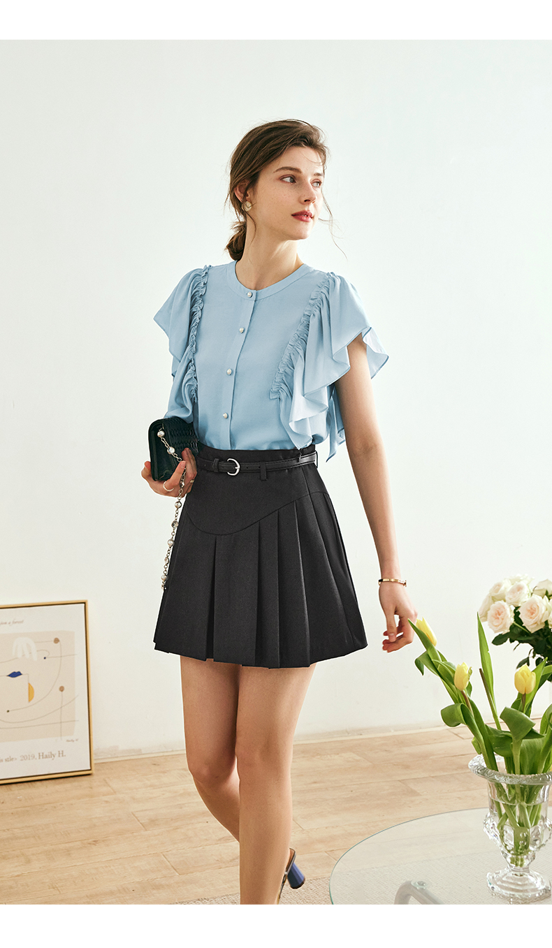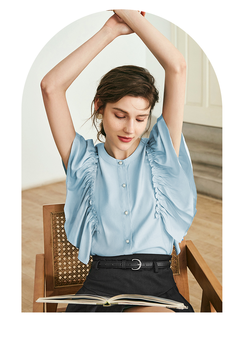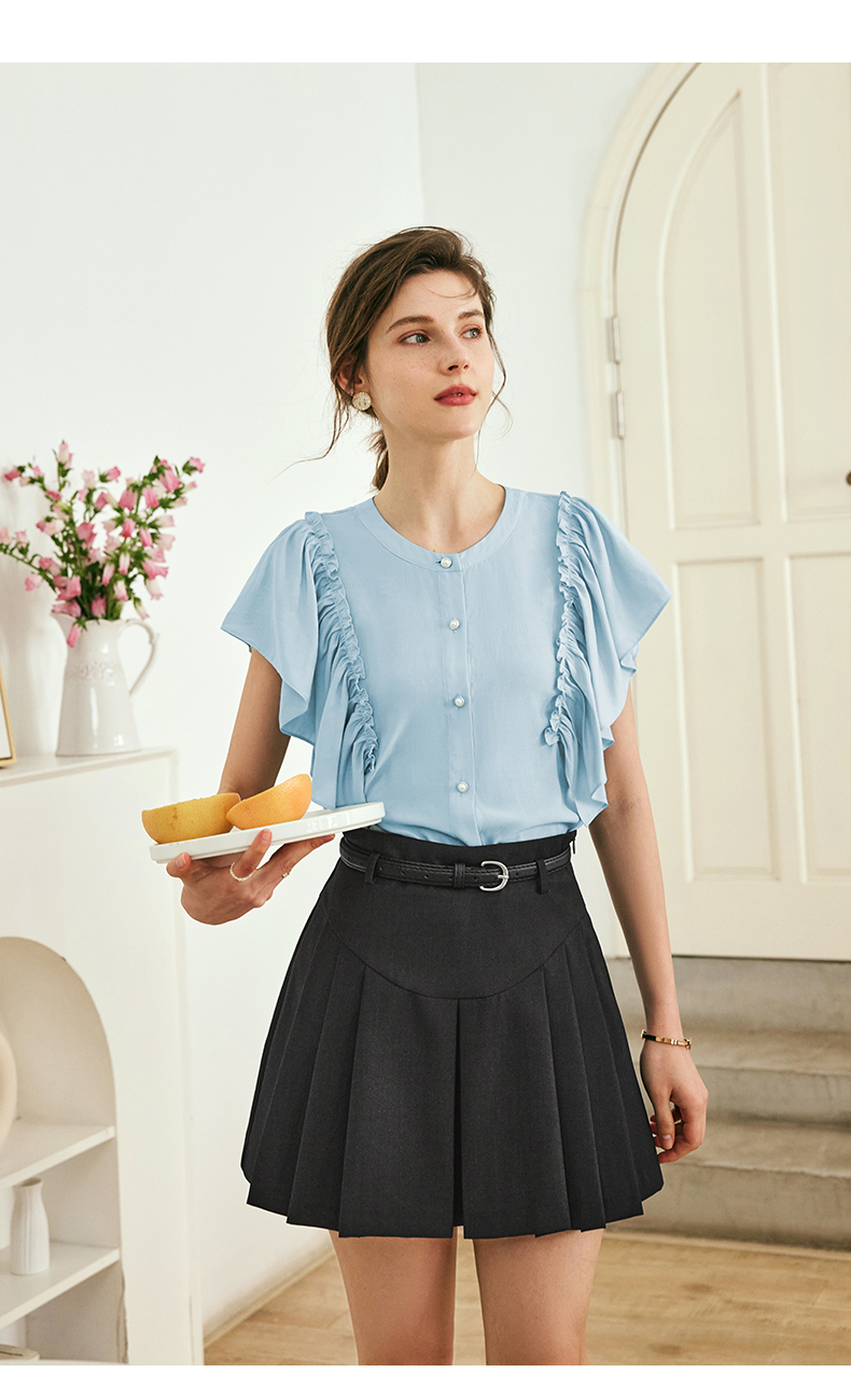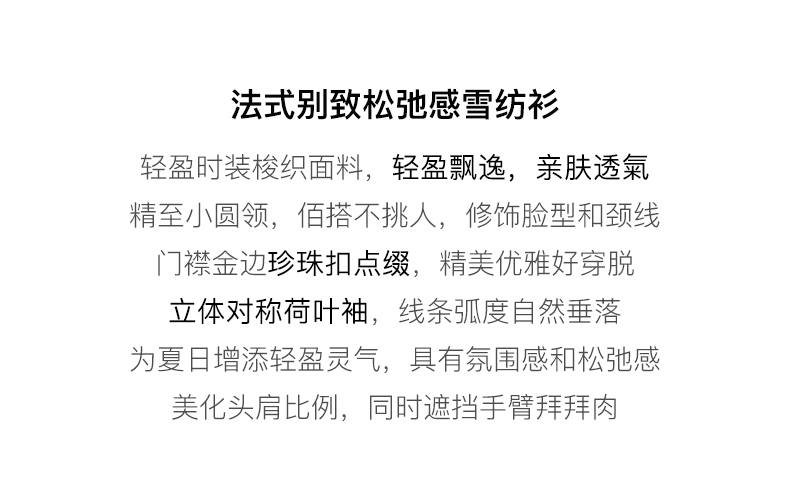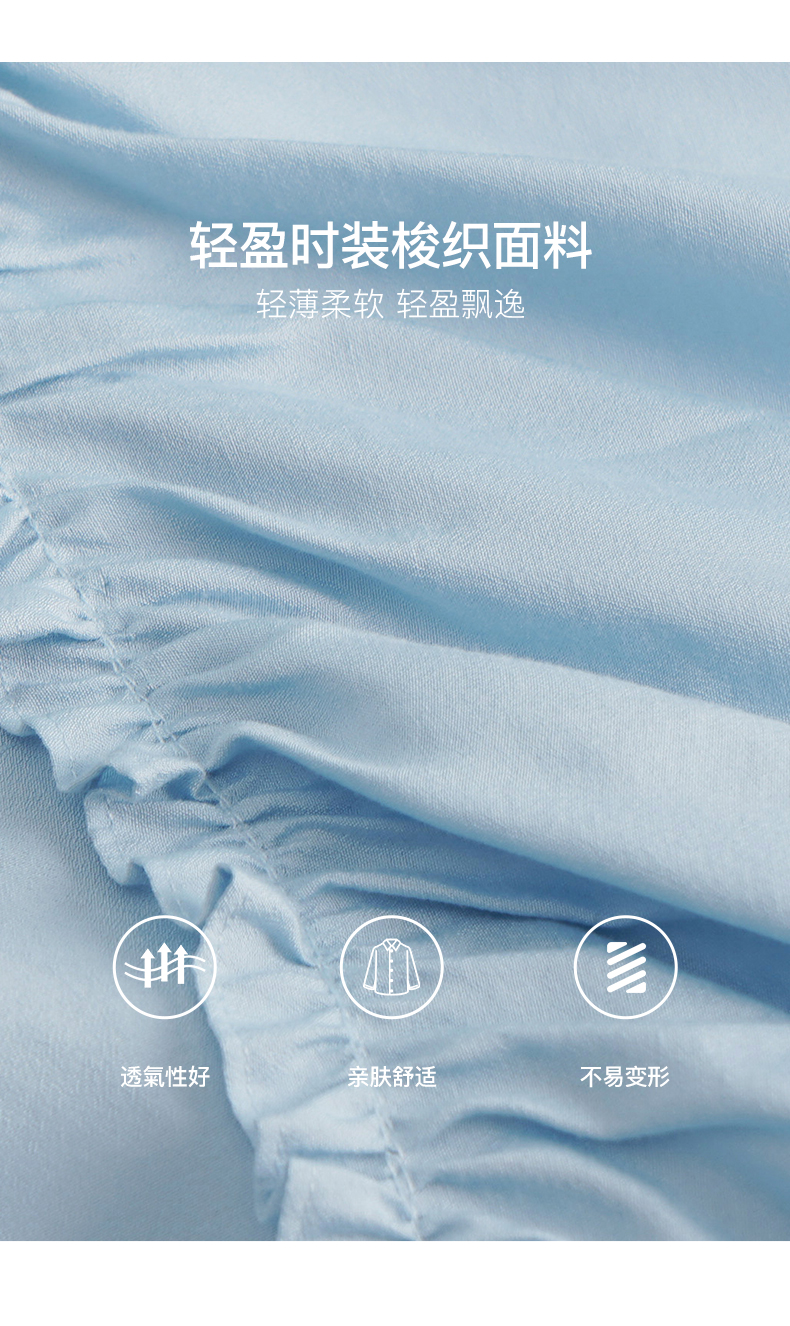 OLrain欧芮儿法式蓝色蕾丝雪纺衫女夏季2023年新款荷叶边薄款小衫